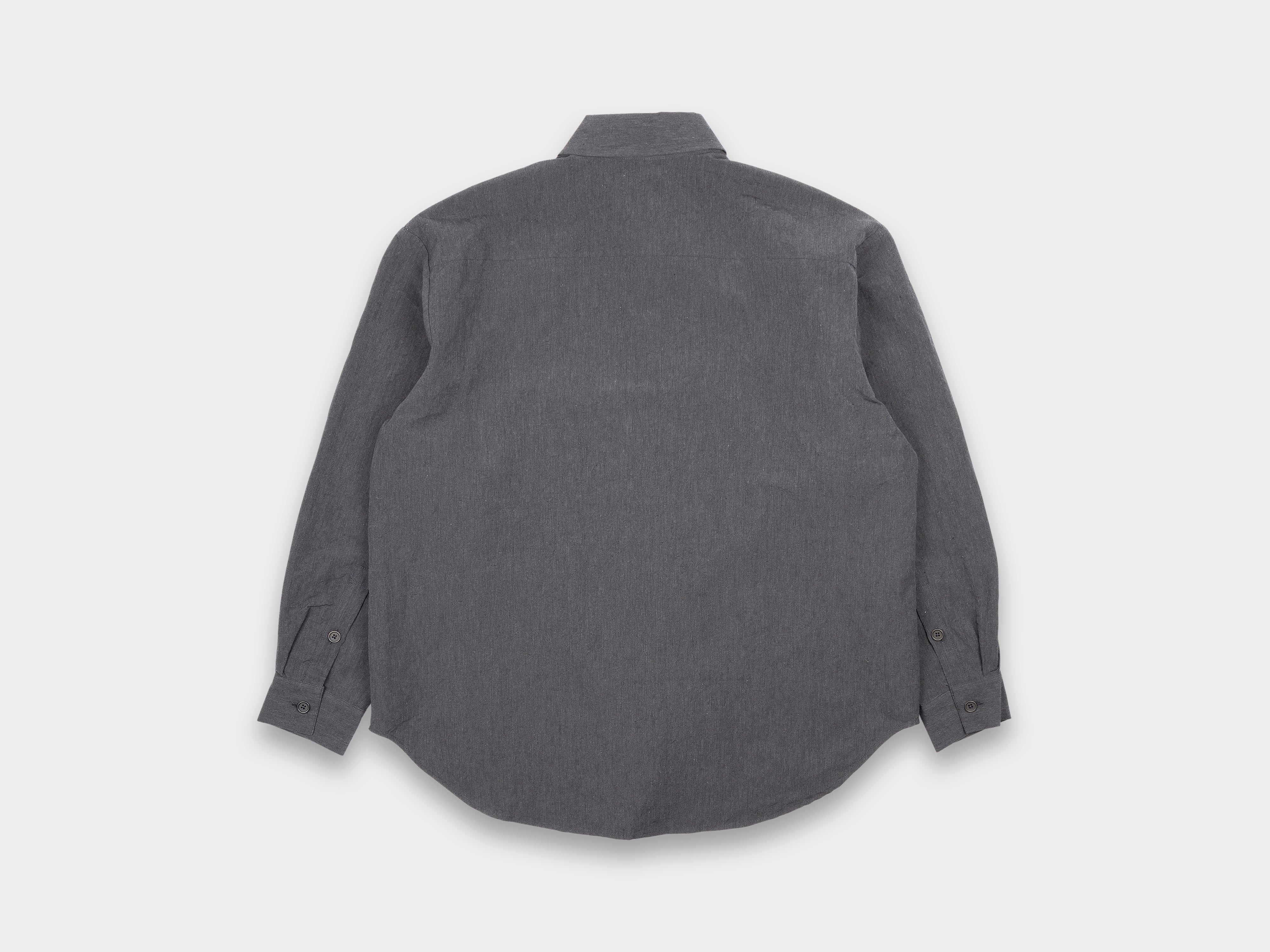+“Big Shirt Two" has a single large dropped chest pocket, Corozo buttons, french seams, squared cuffs, pointed collar, pronounced curved hem and invisible button placket. Based on the fit of Evan Kinori's signature "Big Shirt", this shirt has the same relaxed chest, dropped shoulder and slightly elongated body.