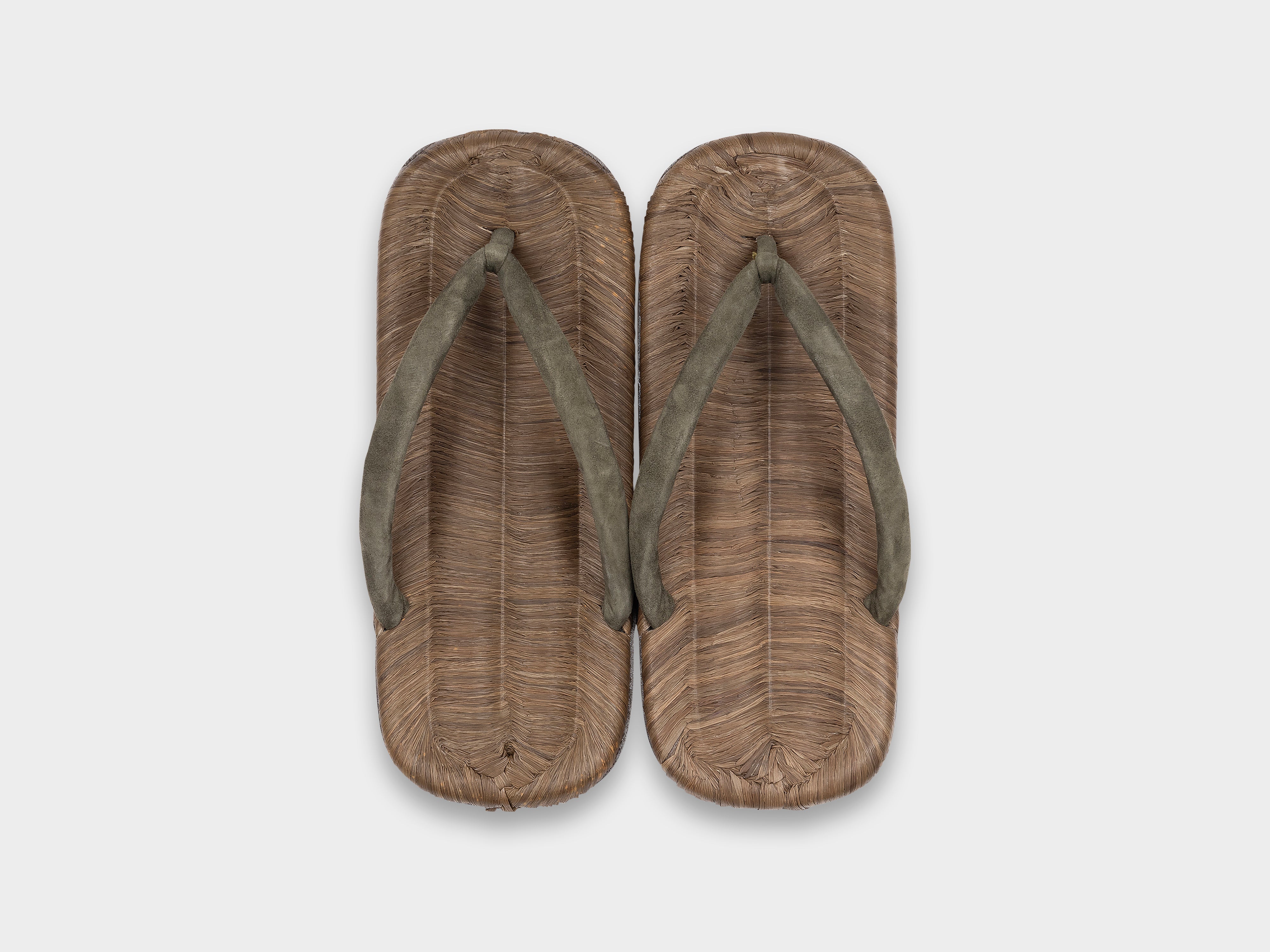 +Adult Zōri sandals that are lightweight and comfortable. Soles made from EVA and high-density rubber skinned with bamboo. Symmetrical sheep suede straps that allow to be worn on either foot.