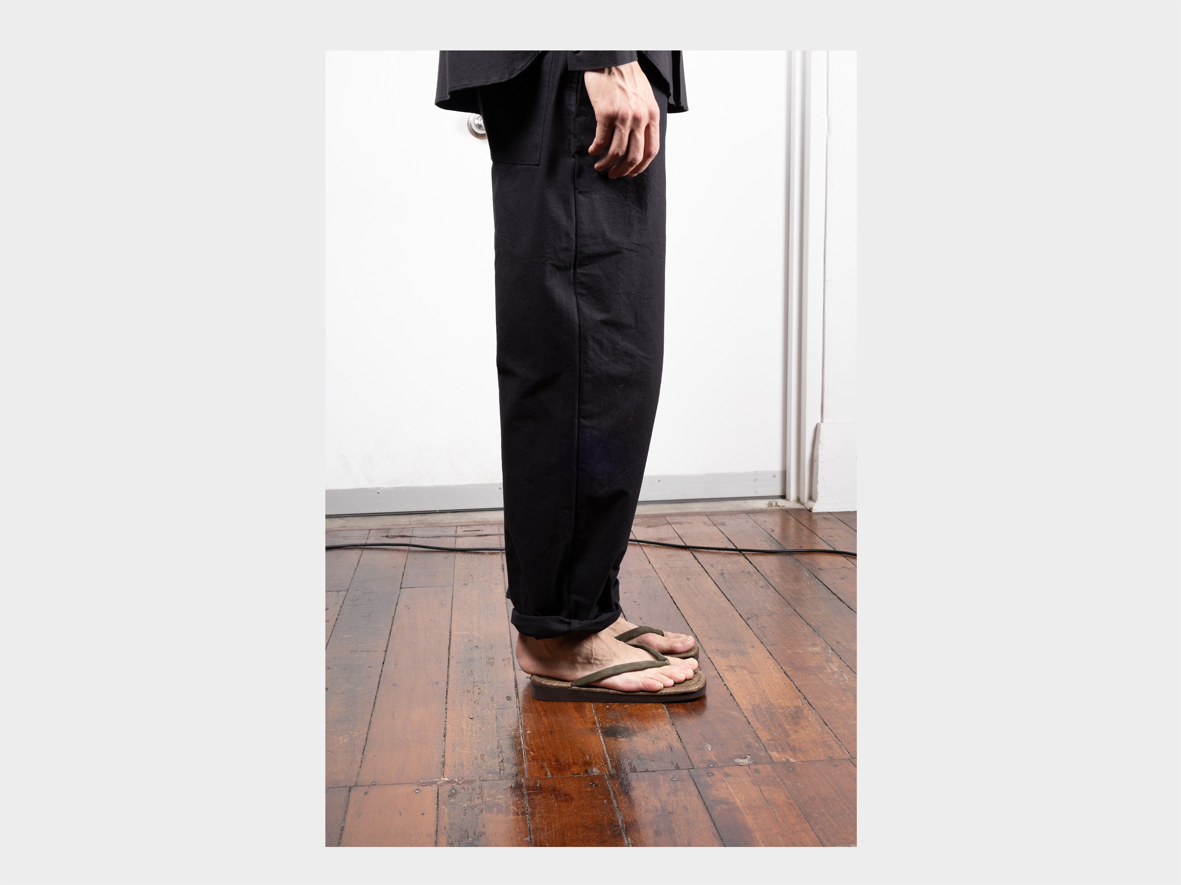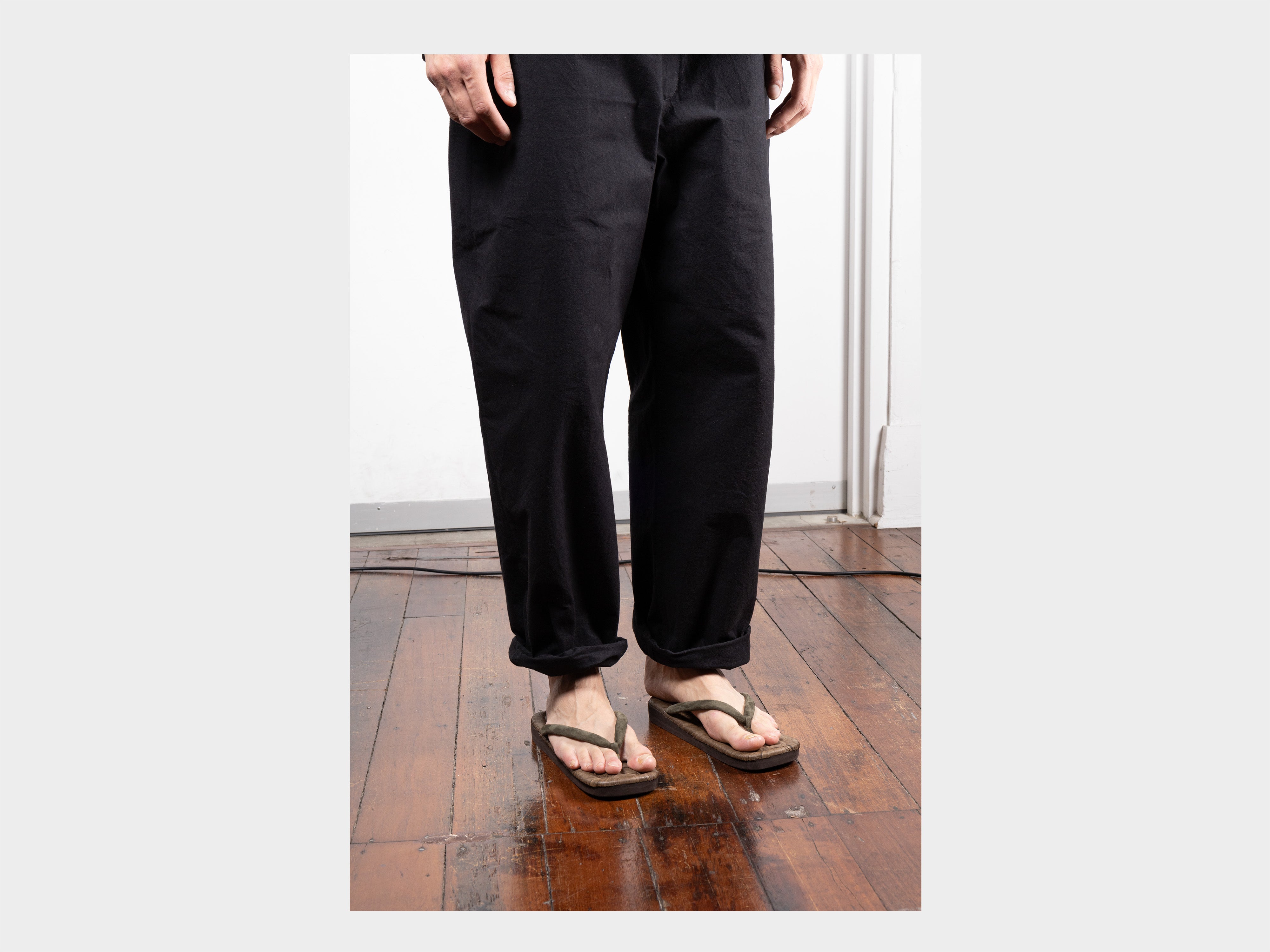 Zōri sandals are designed to fit slightly short on your feet, using the snug fitting straps and toe-piece to grip the shoe. 5mm to 20mm of heel overhang is ideal. Based on centuries of Japanese R&D, this outdoor / work-mode fit will ensure the sandal doesn’t flap around, flick dirt on your back, or slow you down.