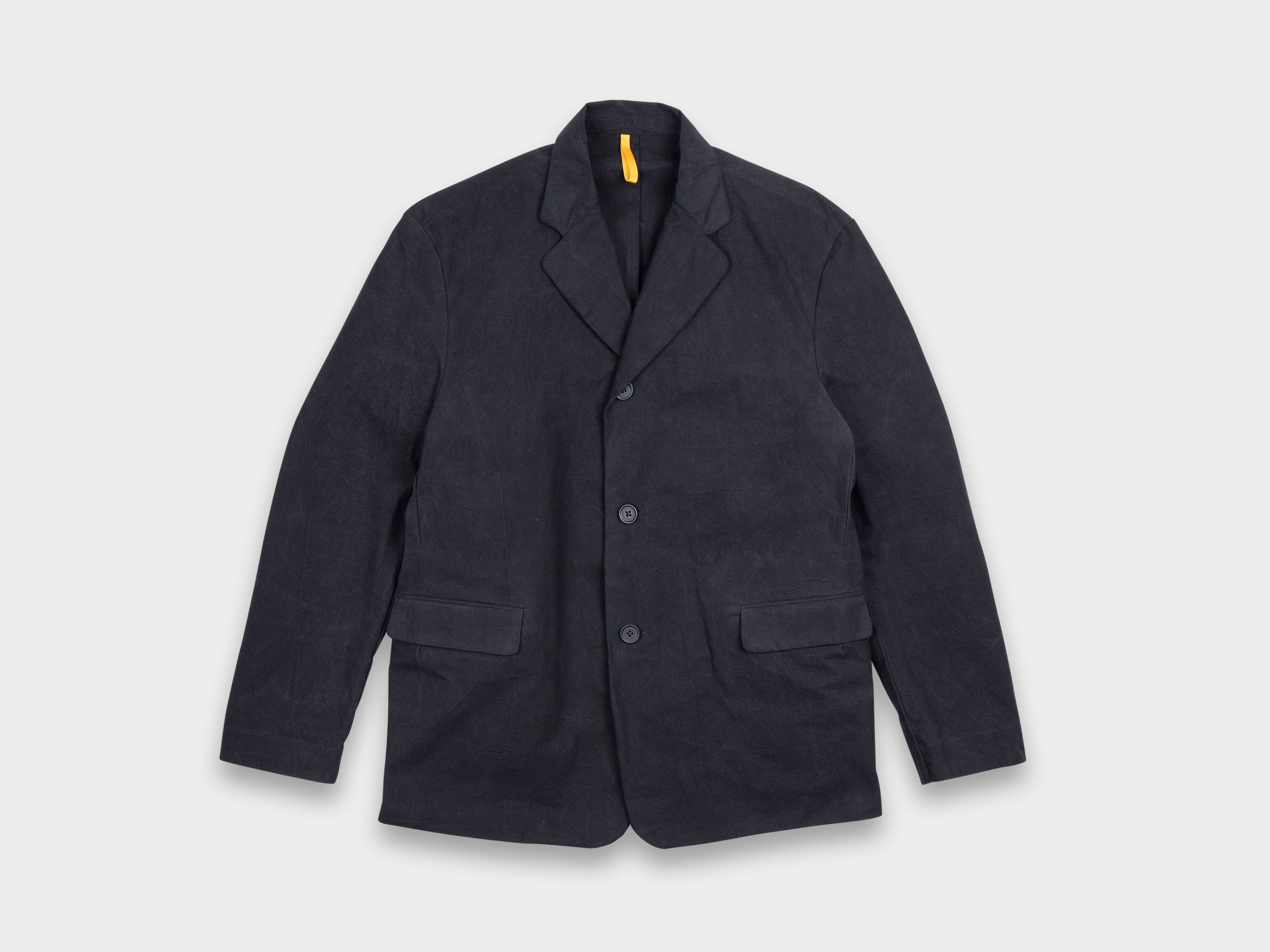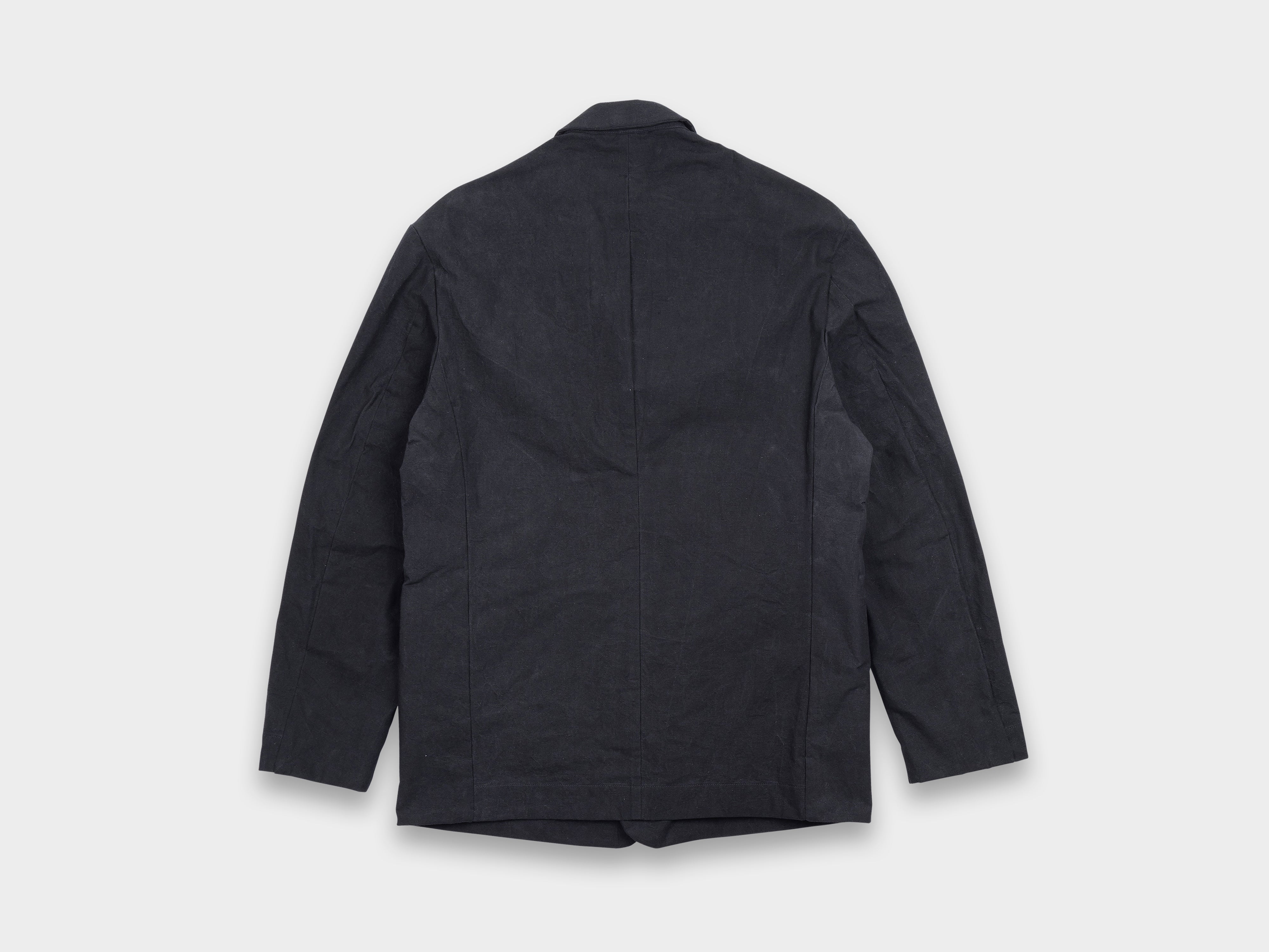 +100% cotton with a paraffin wax coating. Yarn-dyed, high-density and heavyweight, this cloth will develop character over time. With washing and wear it will fade, soften, and irregularities in the cloth may form. Woven for MAN-TLE in Shizuoka, Japan.