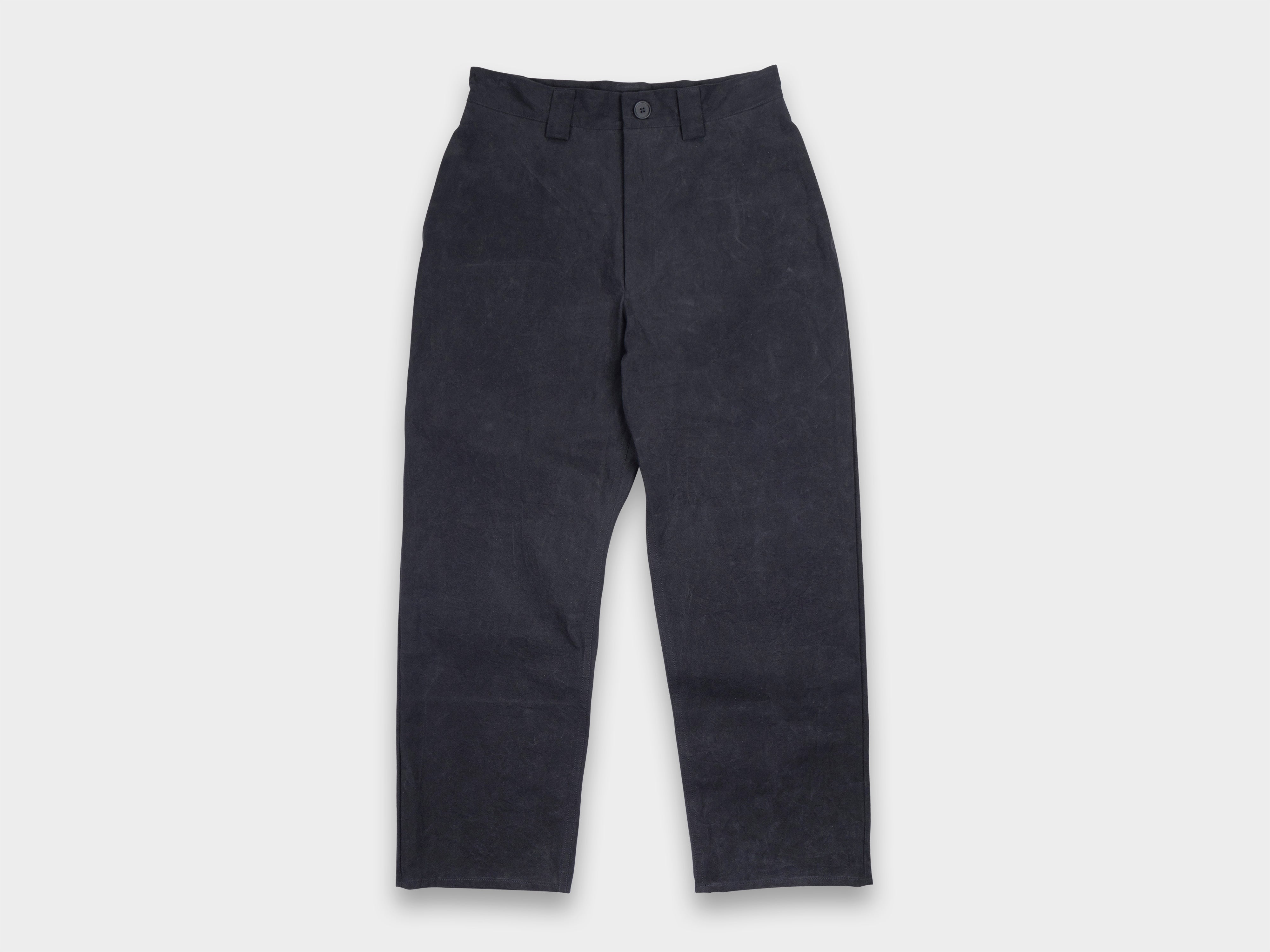 100% cotton with a paraffin wax coating. Yarn-dyed, high-density and heavyweight, this cloth will develop character over time. With washing and wear it will fade, soften, and irregularities in the cloth may form. Woven for MAN-TLE in Shizuoka, Japan.