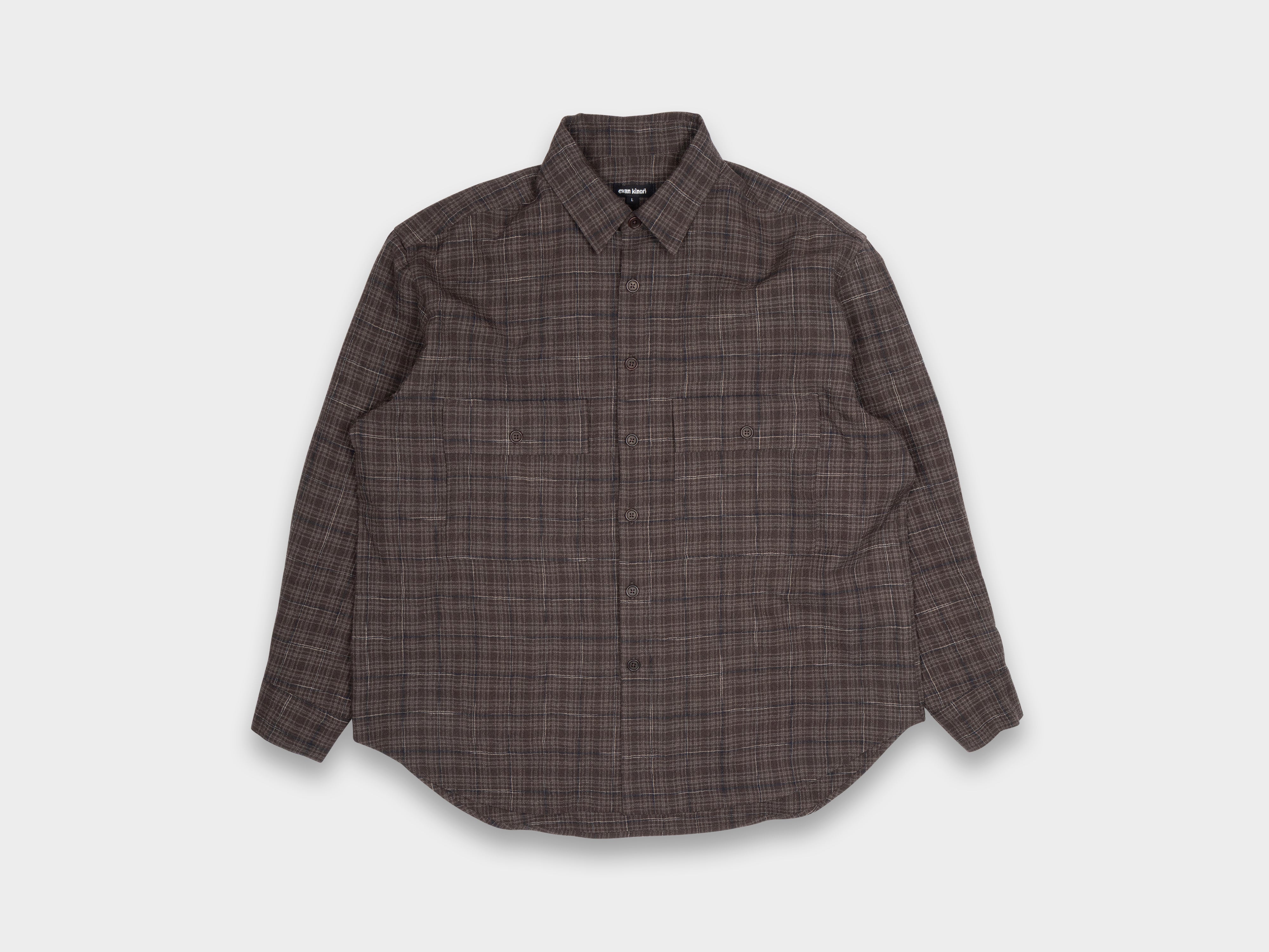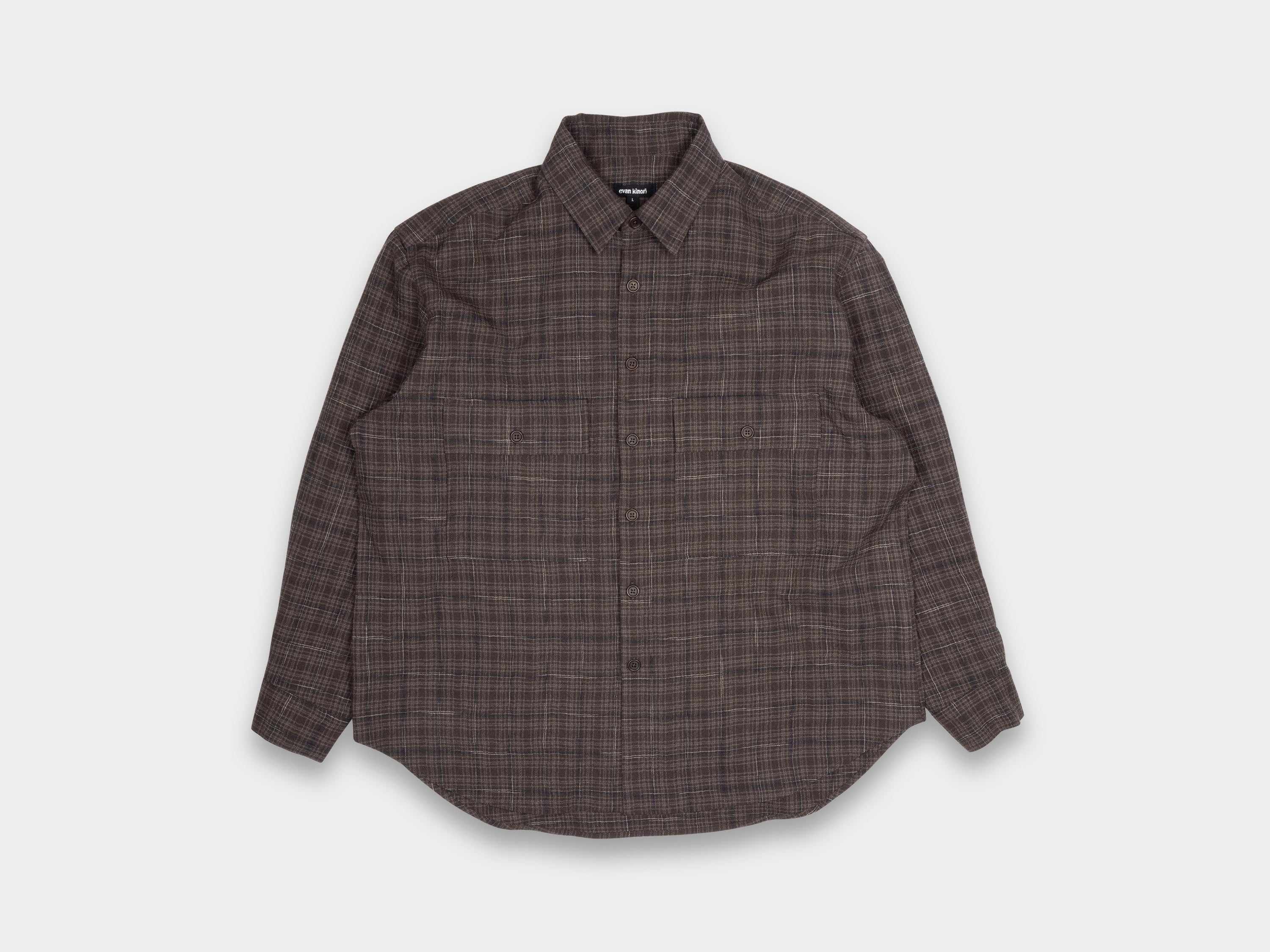 - Evan Kinori Big Shirt Kasuri Wool Check Beige / Navy