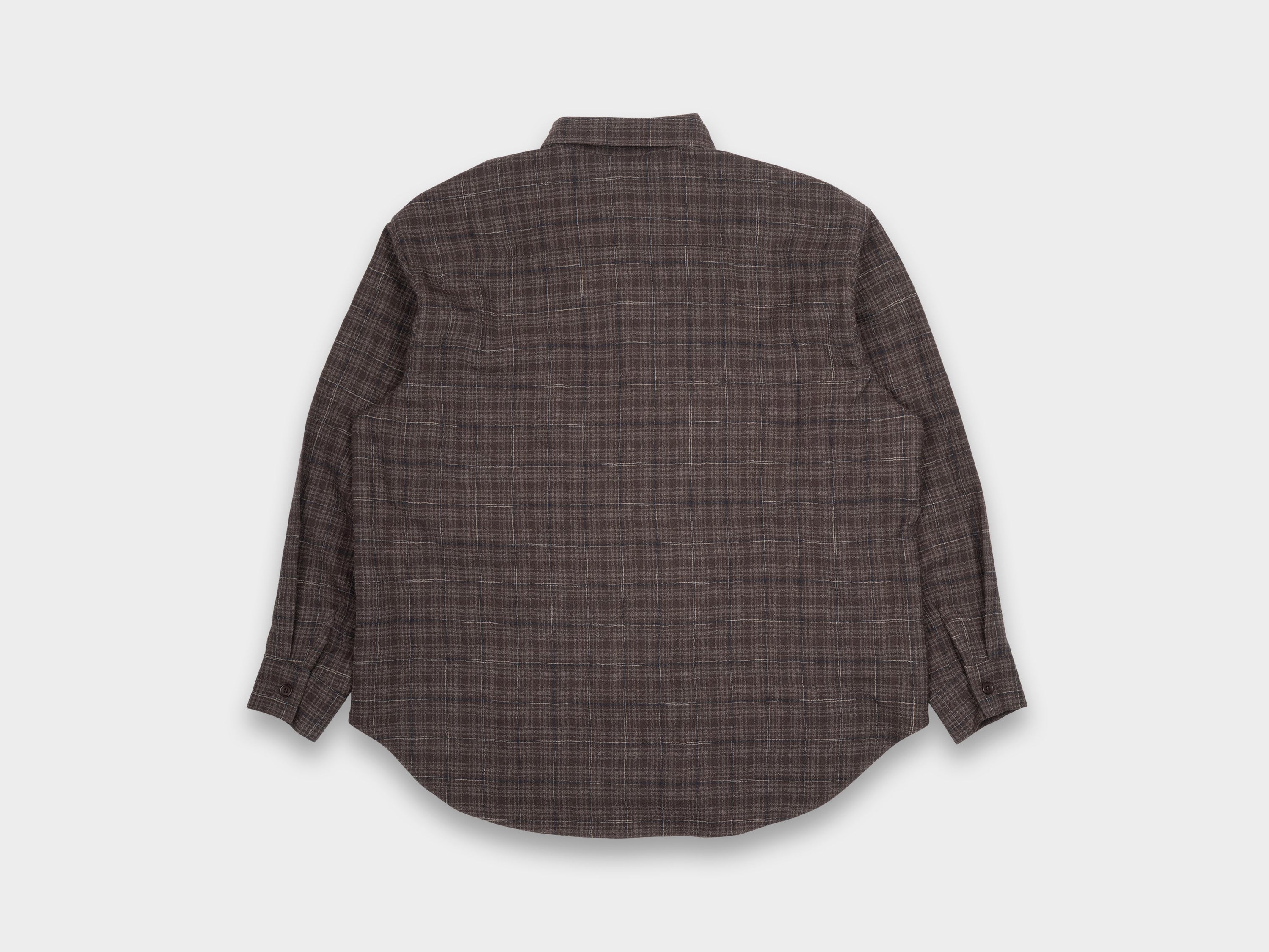 +“Big Shirt" has large dropped chest pockets, Corozo buttons, french seams, squared cuffs with single button closure, pointed collar, wide stitched placket, and a pronounced curved hem. This shirt has a relaxed chest, a dropped shoulder and slightly elongated body. Made in Japan.