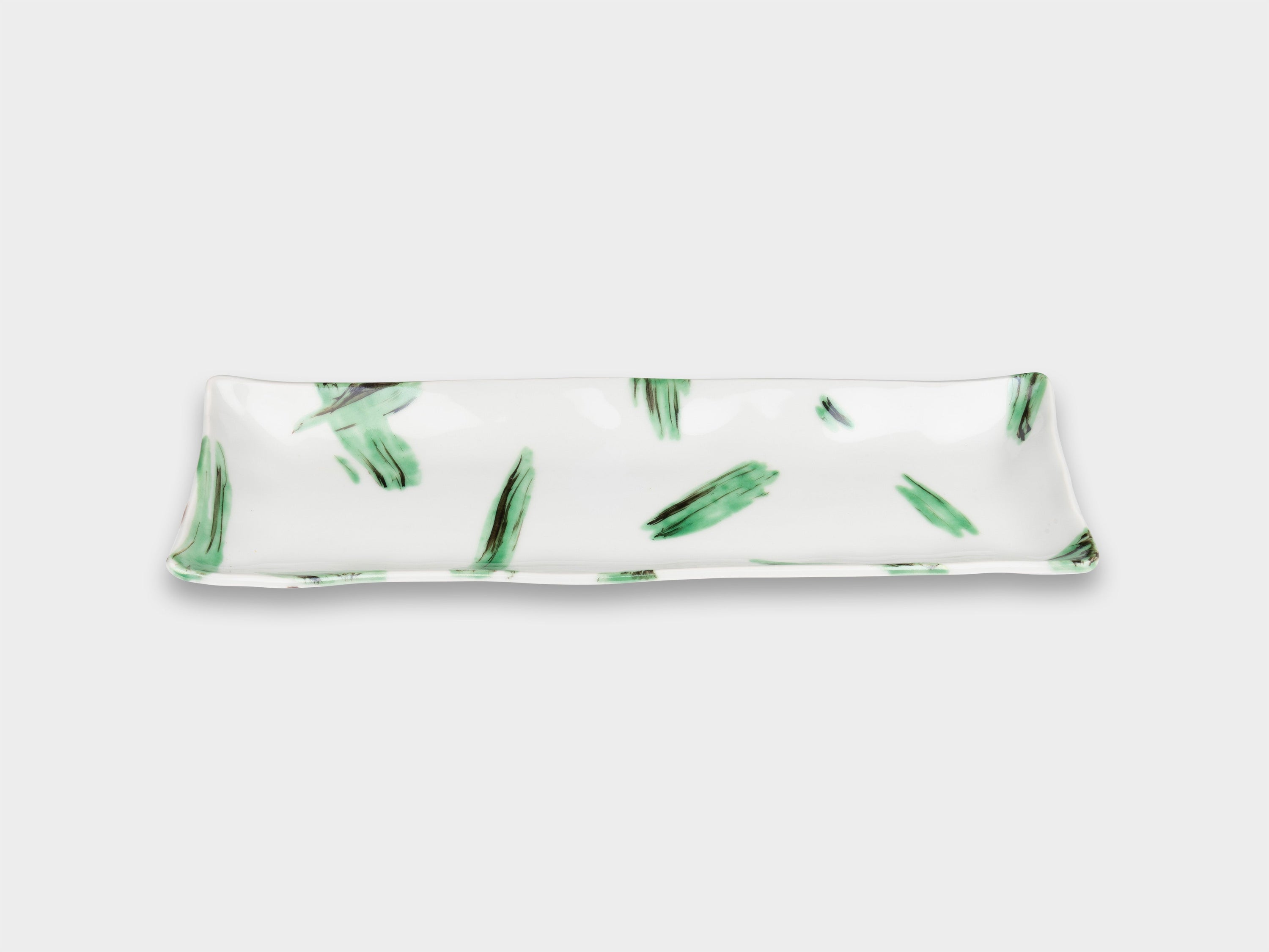 - Furukawa Shozo Long Rectangle Plate Green Leaves