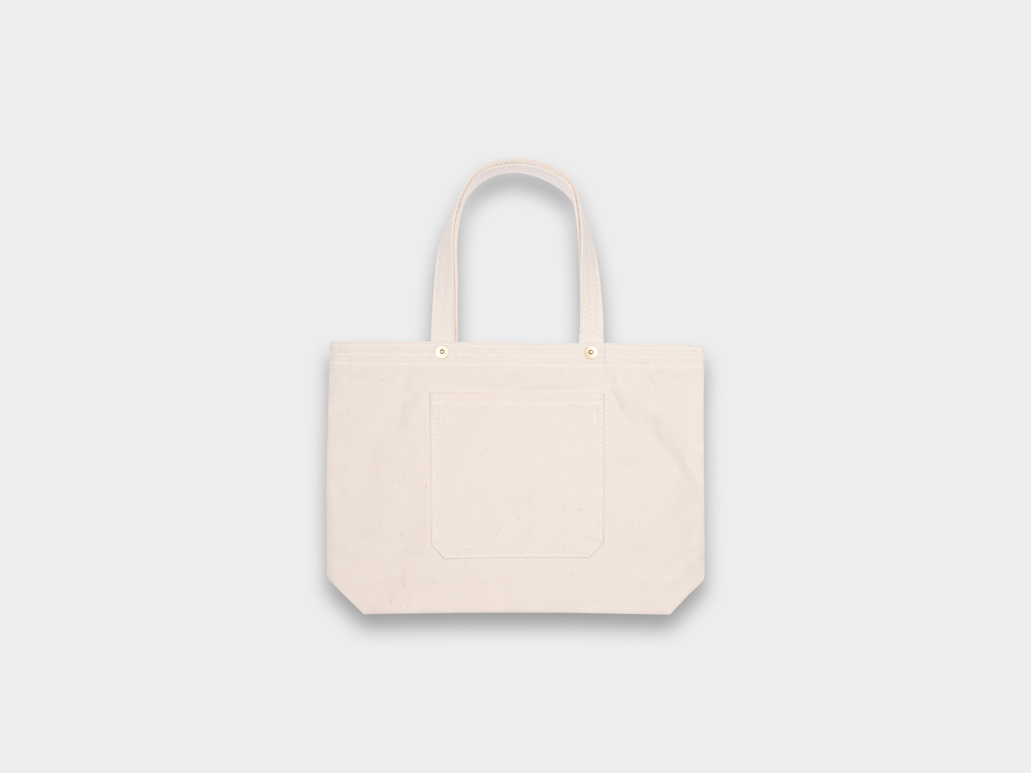 Heavy–duty bucket style tote bag with a design that remains unchanged for over 100 years. Spacious main compartment with an external sewn–on front pocket and high density straps. Made in Japan.