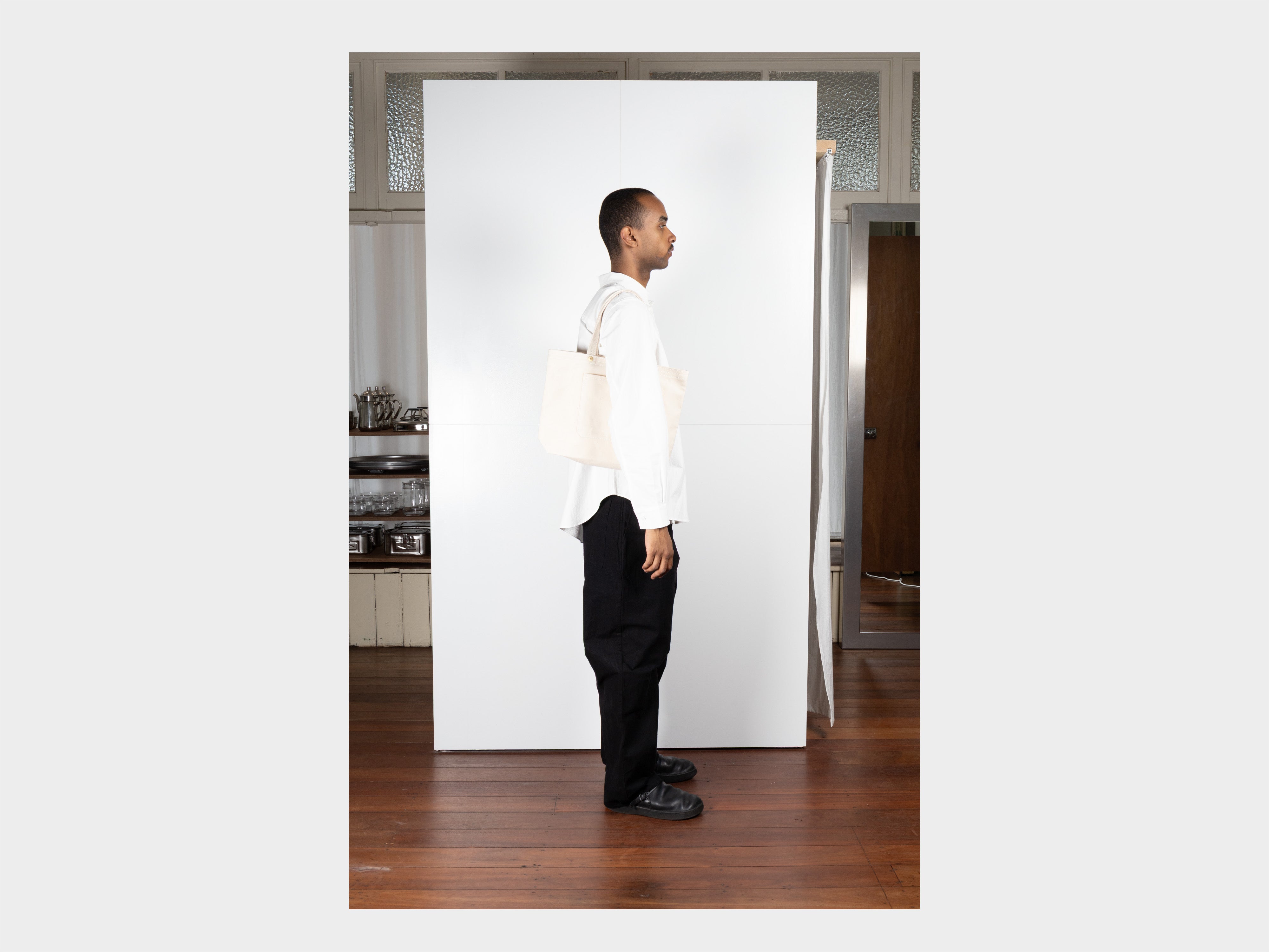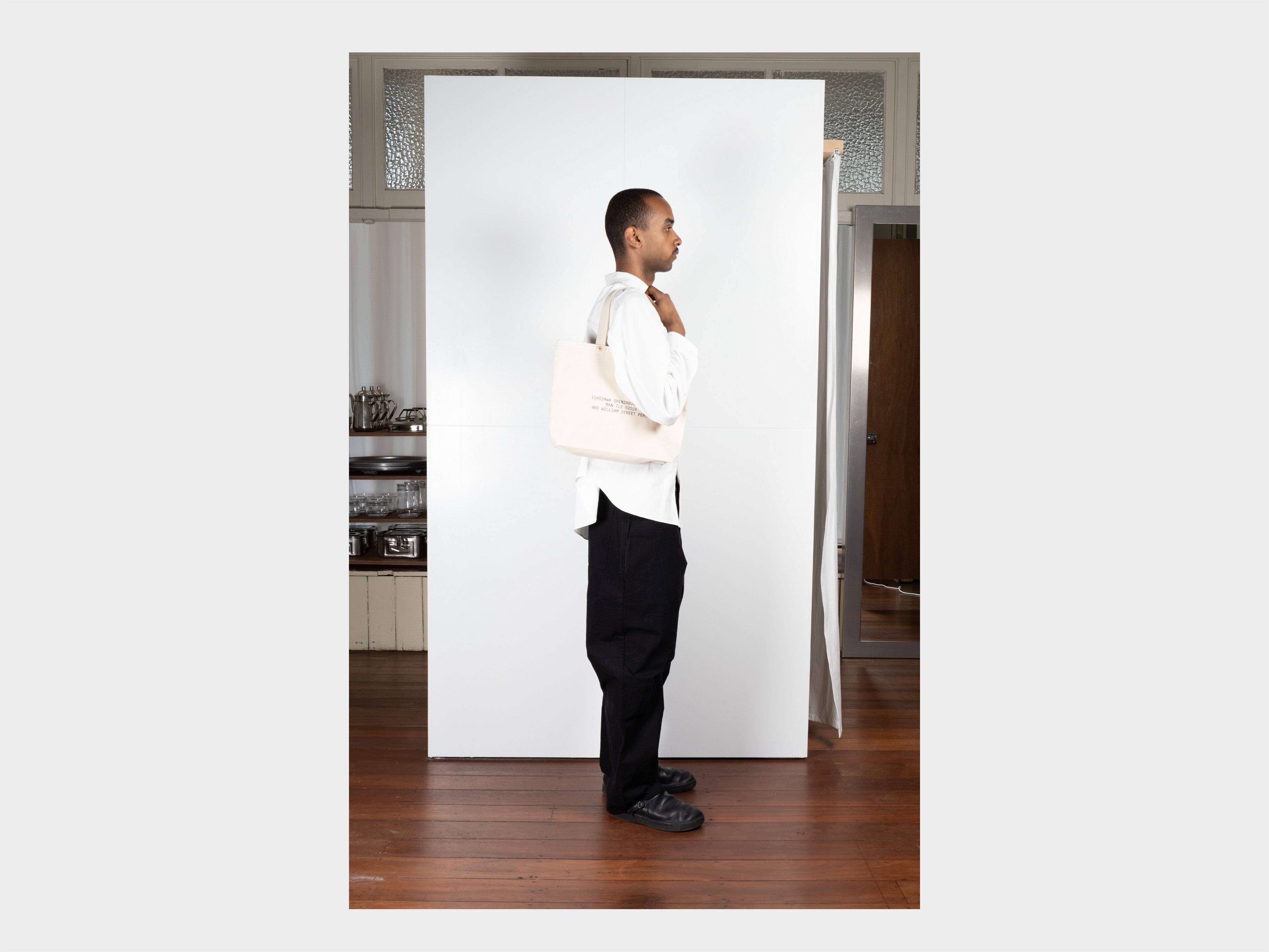 • Ichizawa Shinzaburo Hanpu is a Kyoto–based bag maker with over a century of history. Crafted in their Higashiyama workshop, each bag is made by skilled artisans using specially woven, thick high–density canvas, following the same uncompromising philosophy since the early 1900s. Originally developed as hard–wearing tool bags for tradespeople who cycled to work, they were often printed with business names or addresses, turning daily deliveries and commutes into practical advertisements throughout Kyoto.