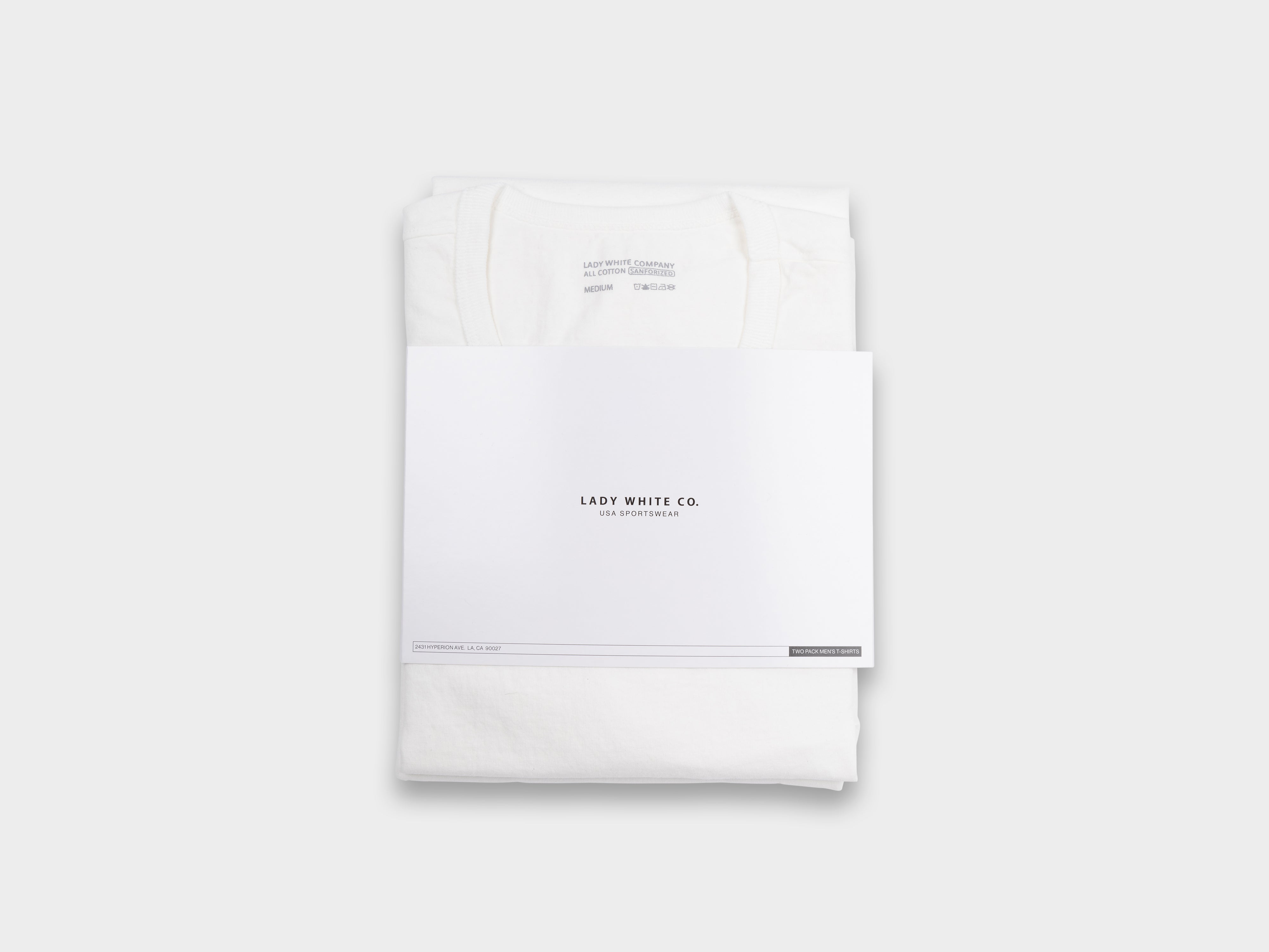 +T-shirt 2-pack is the essential Lady White Co. product. Using a circular-knit jersey, these t-shirts are pre-shrunk and get better with washing and wear. The collar is bound with a rib and cover-stitched flat.