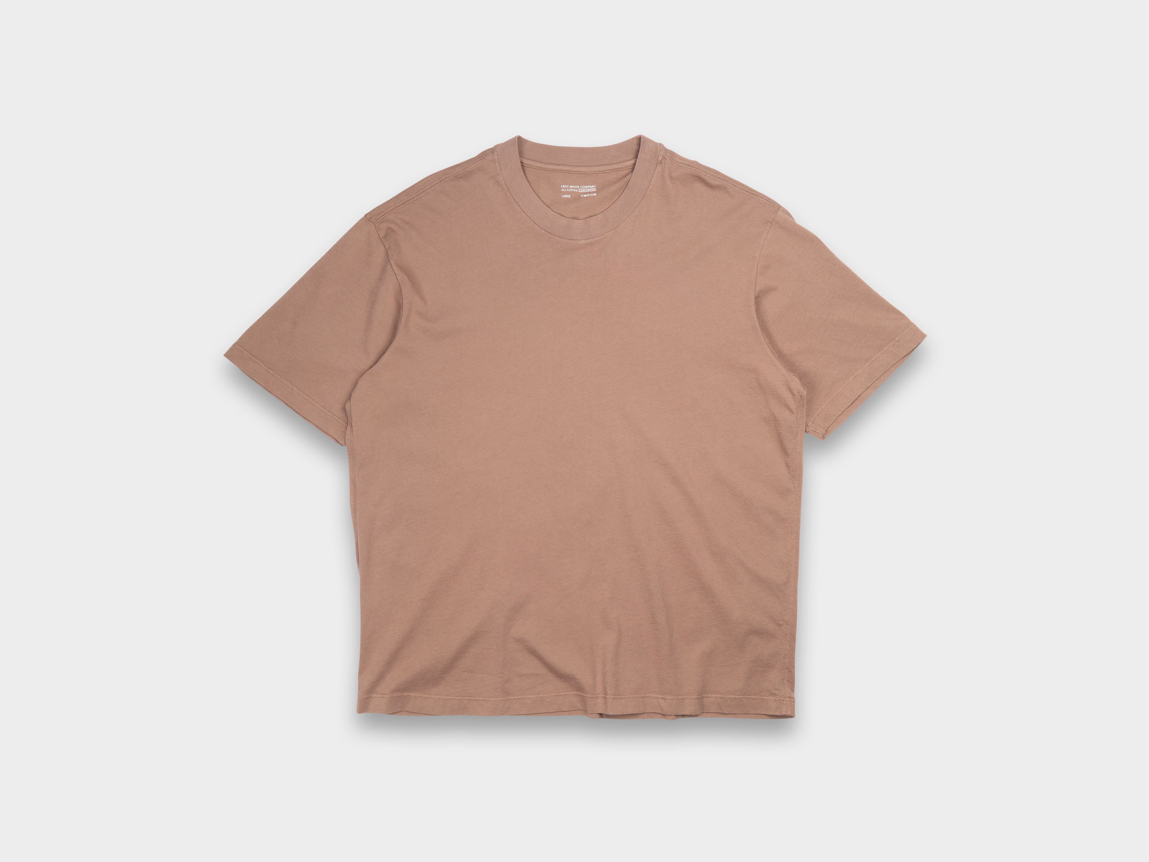 The lightest t-shirt in the Lady White Co. range. Made from custom knit jersey with a slight drape, this t-shirt is a boxy, wide fit and has a high neckline. Made in Los Angeles.