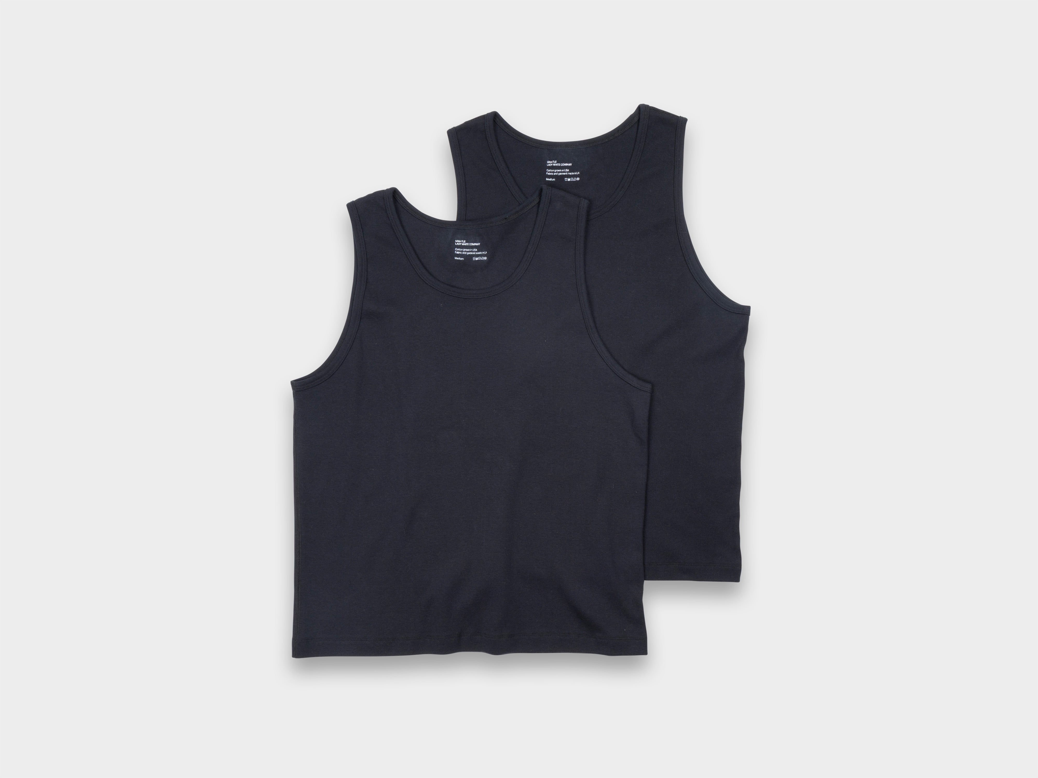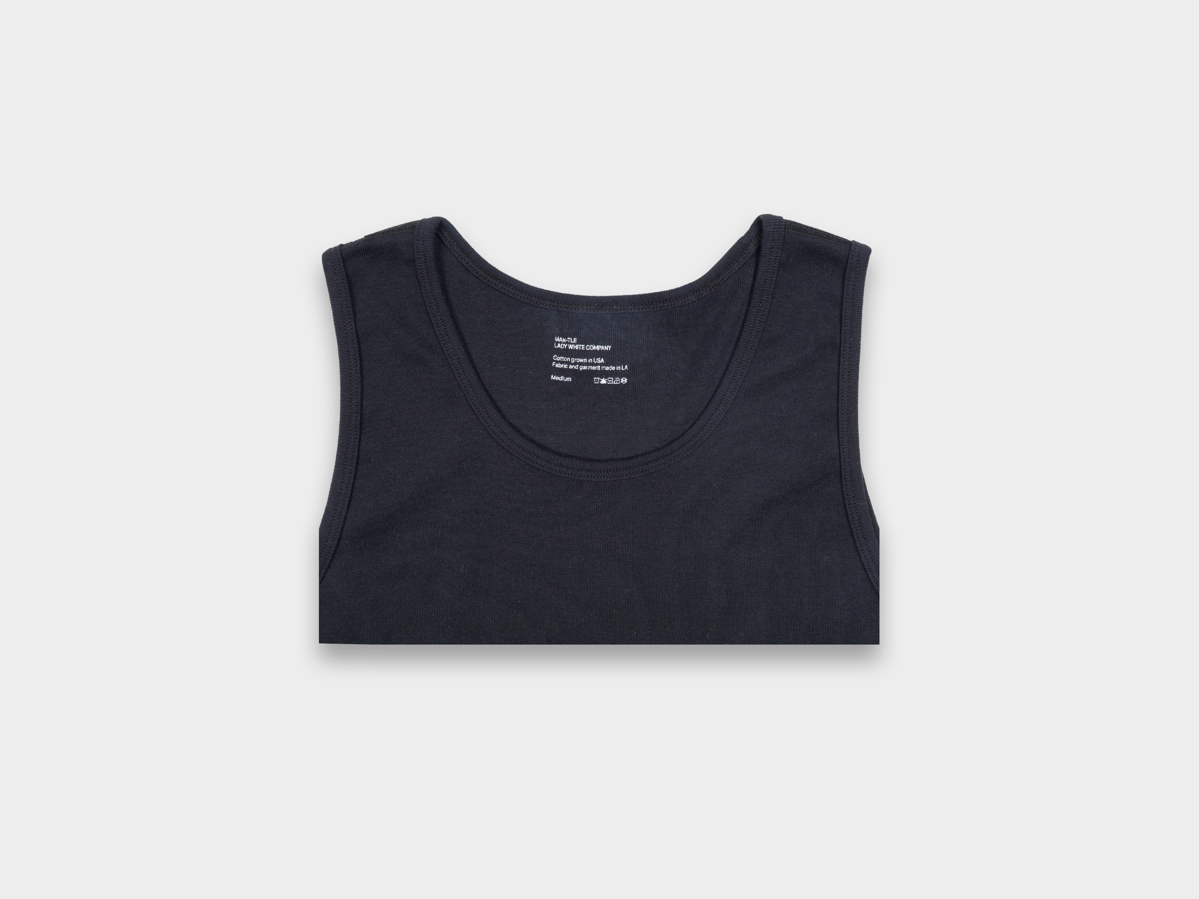 +Collaboration with Lady White Co – original, sanforized cotton-rib singlets. Reverse flatlock seams, butterfly-bound finish on the neckline. Comfortably layered with MAN–TLE shirts and outerwear. Dyed and knitted in Los Angeles using combed, ring-spun American cotton yarn.