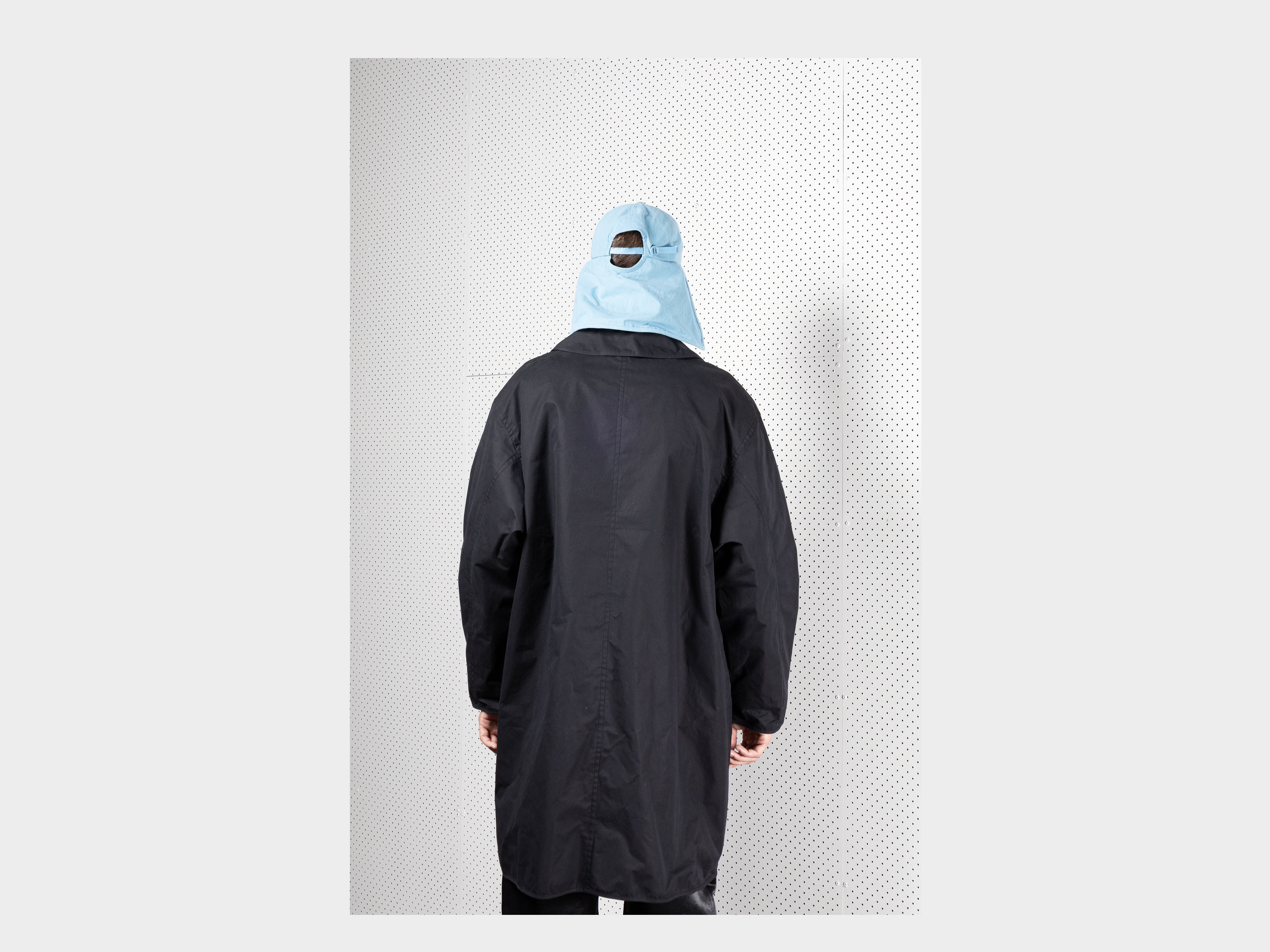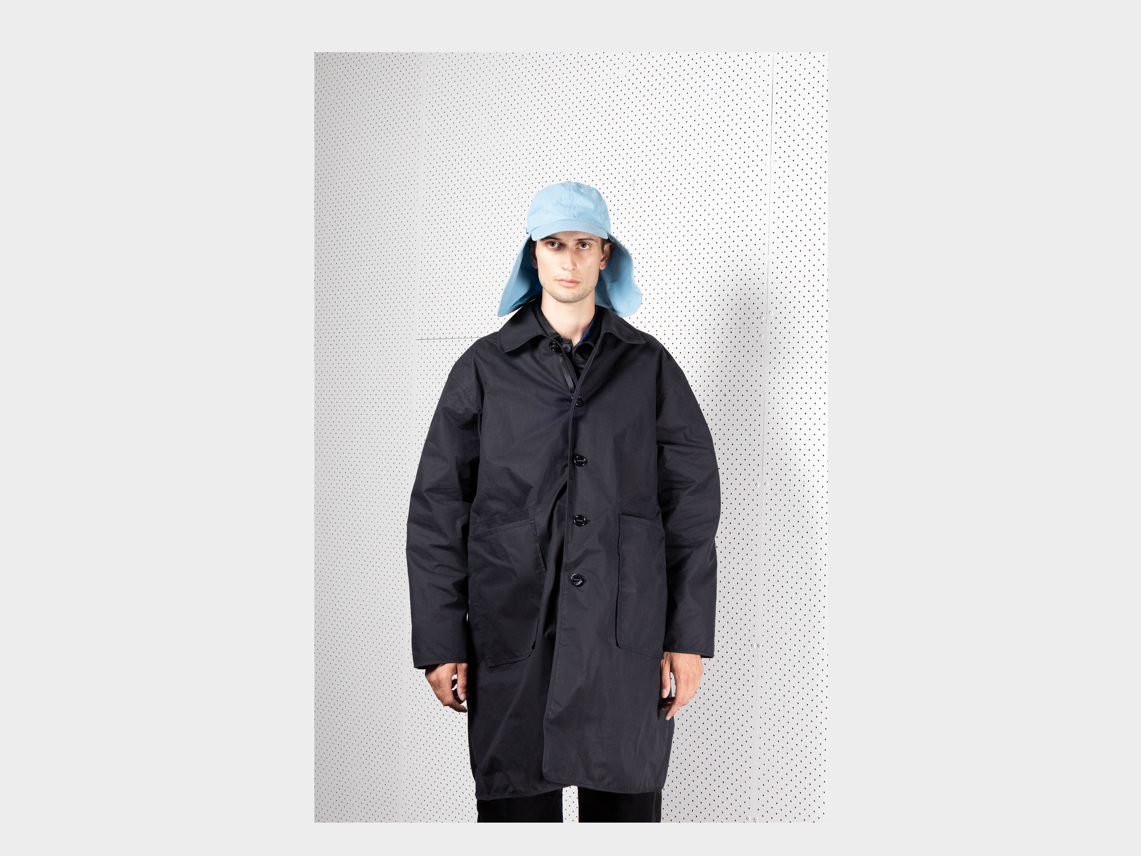 100% cotton with a paraffin wax coating. Yarn-dyed, high-density and heavyweight, this cloth will develop character over time. With washing and wear it will fade, soften, and irregularities in the cloth may form. Woven for MAN-TLE in Shizuoka, Japan.