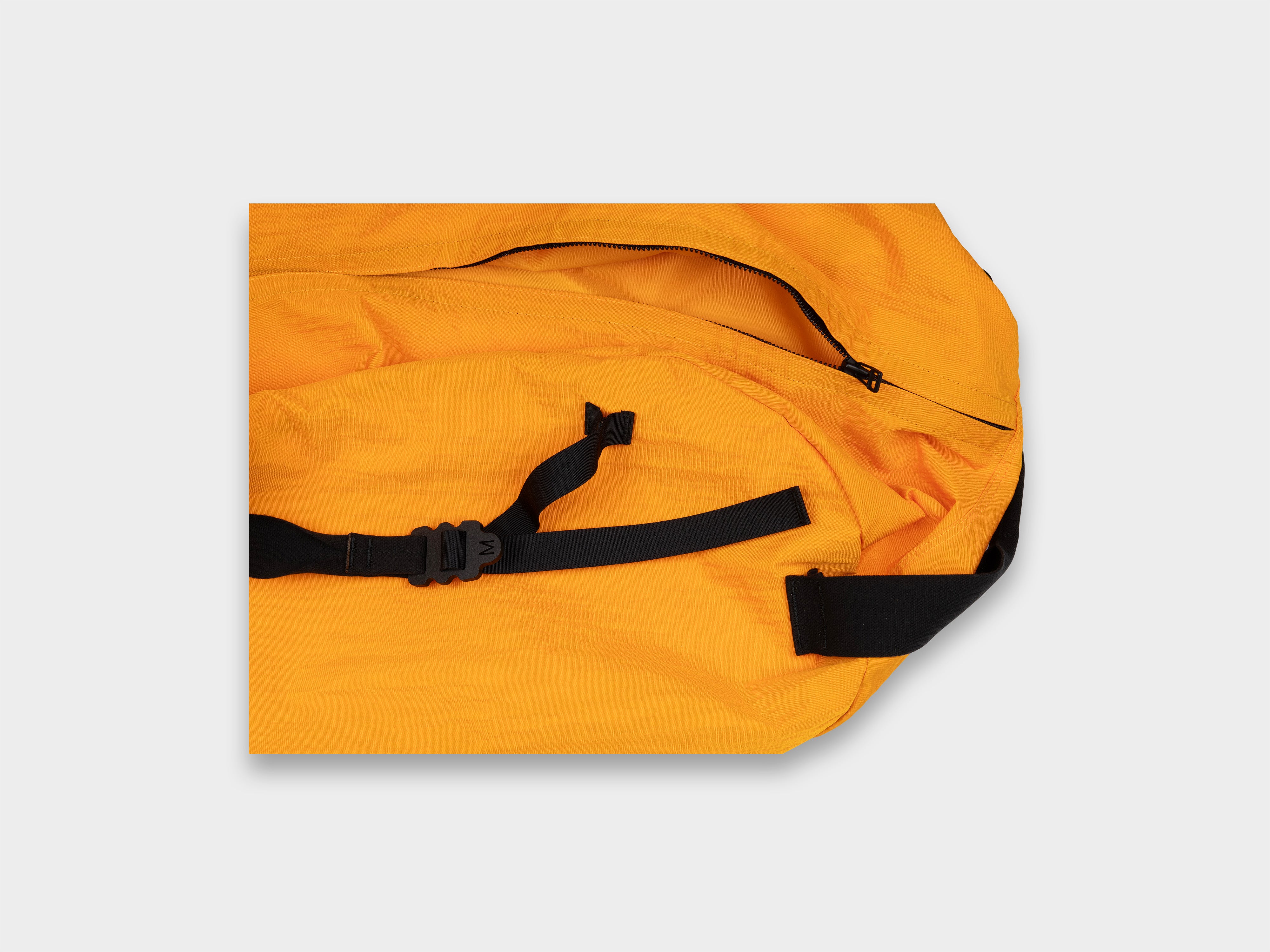 +Oversized duffle bag made in collaboration with designer Rikiya Matsumura. Spacious main compartment with zip closure, handles at the top and bottom, and backpack straps with MAN-TLE signature hardware – Jotun powder-coated aluminum strap slider, laser-cut for MAN-TLE in Australia. Bag made in Japan.