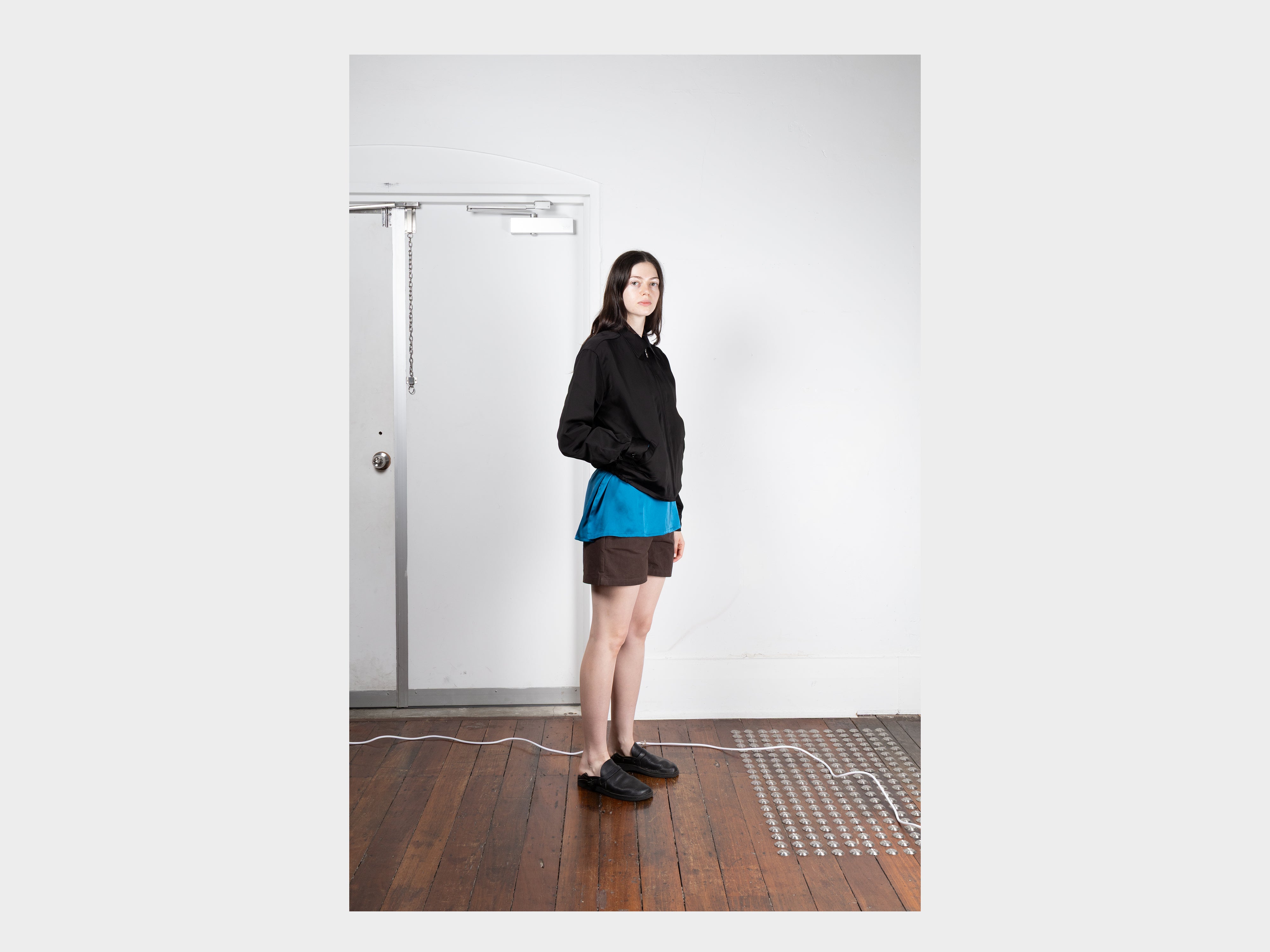 +62% viscose / 38% satin-weave washi paper. Double-faced fabric with a shiny, smooth outer and a dry, paper-like texture on the inside. Designed to soften with wear. Woven in Fukui, Japan.