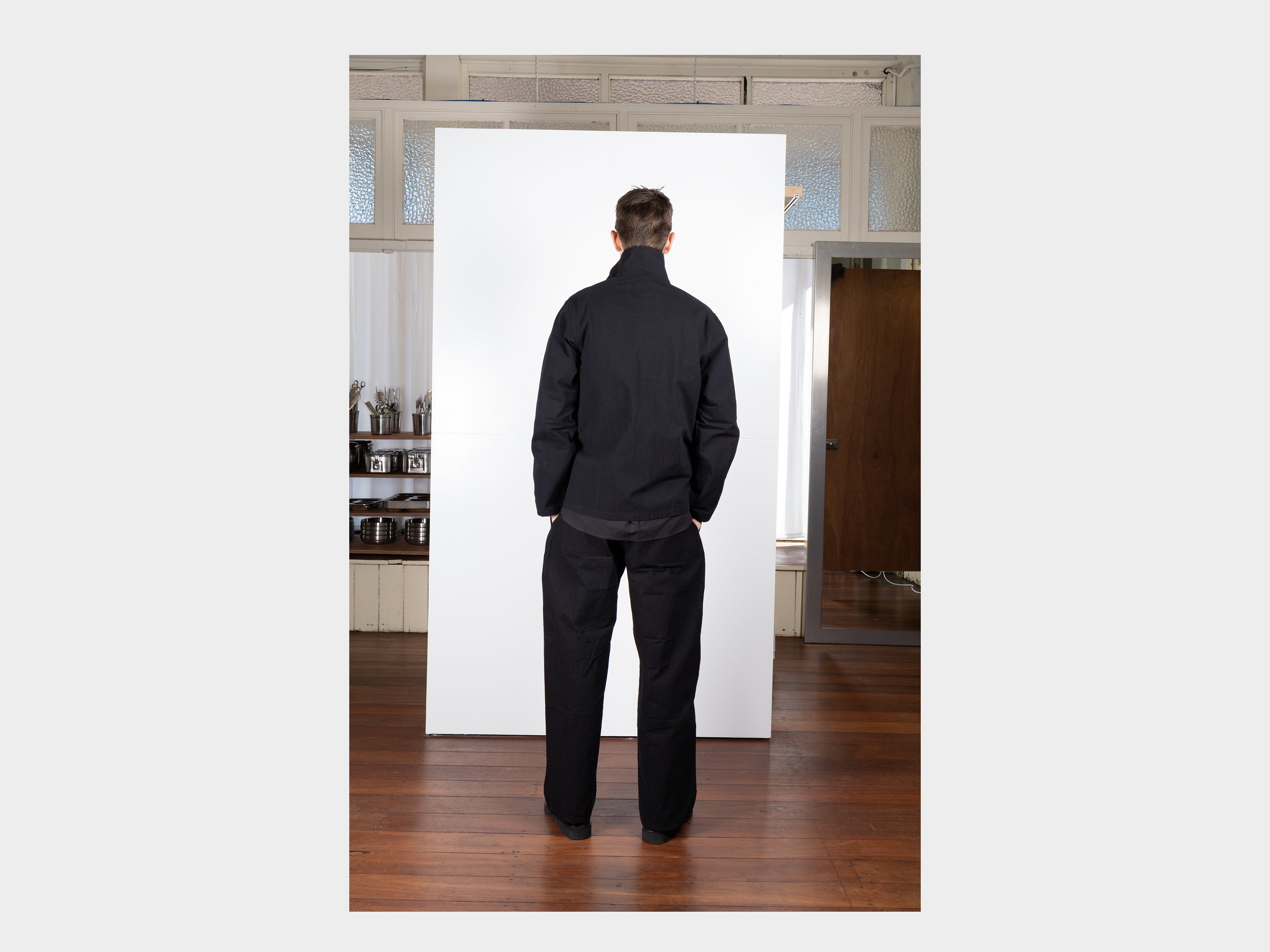 +Zip-up jacket with a stand collar. Bound pockets, bartack reinforcements at the front facing, double-ended zipper, straight hem. Made in Japan.