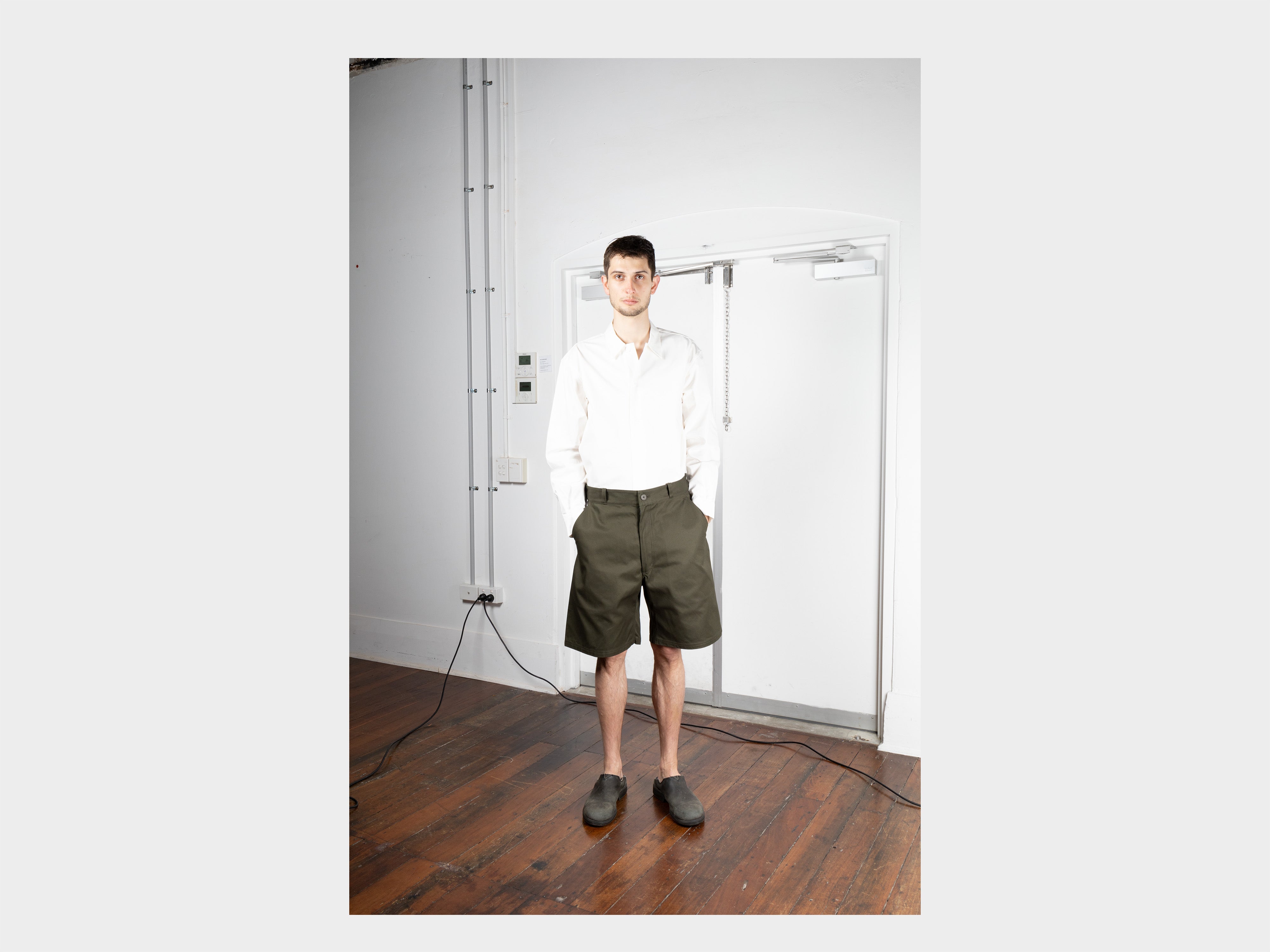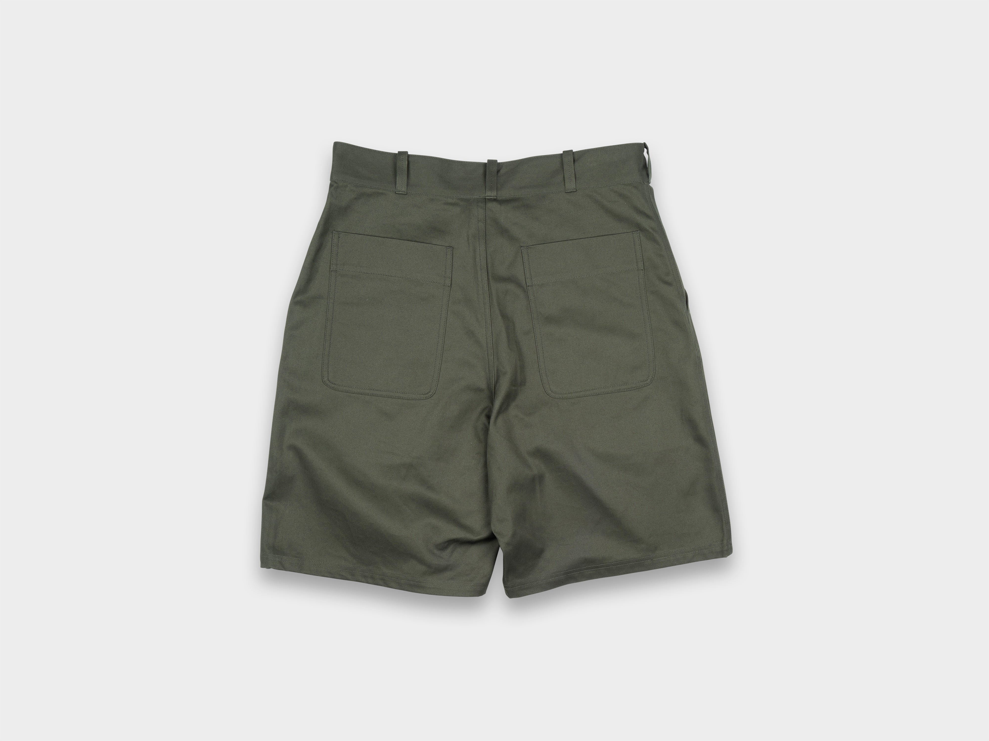 +Work shorts suitable for industry. Wide cut with generous room in the crotch and thigh for ease of movement. Deep side-seam pockets, one with internal pocket and large back patch pockets. Double-stitched welted seams. Made in Japan.