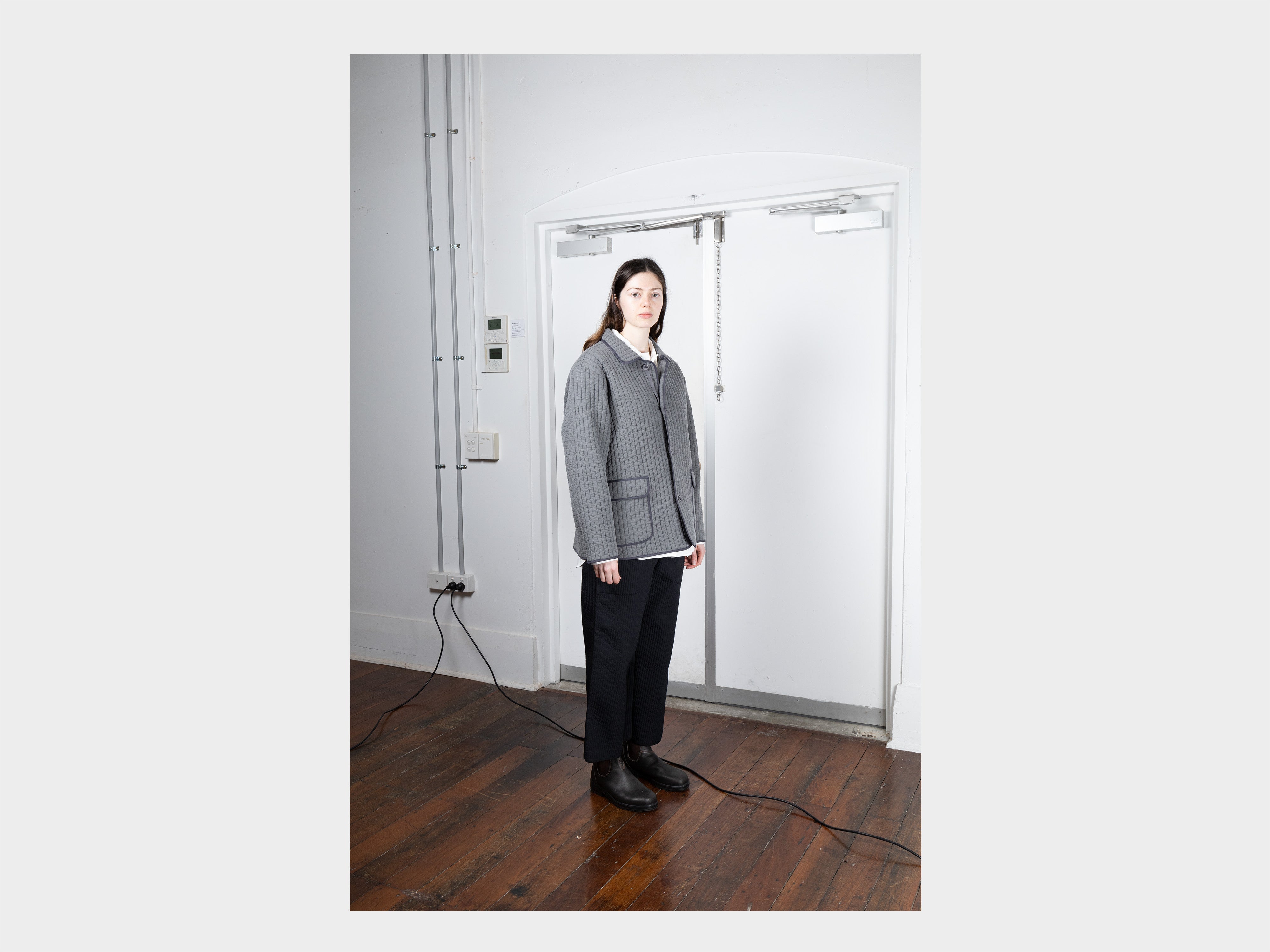 +Soft-type Nubi cloth. 100% cotton layers / 100% polyester fill, 18mm stitched wales. Dyed and woven for MAN-TLE in Daegu, South Korea.