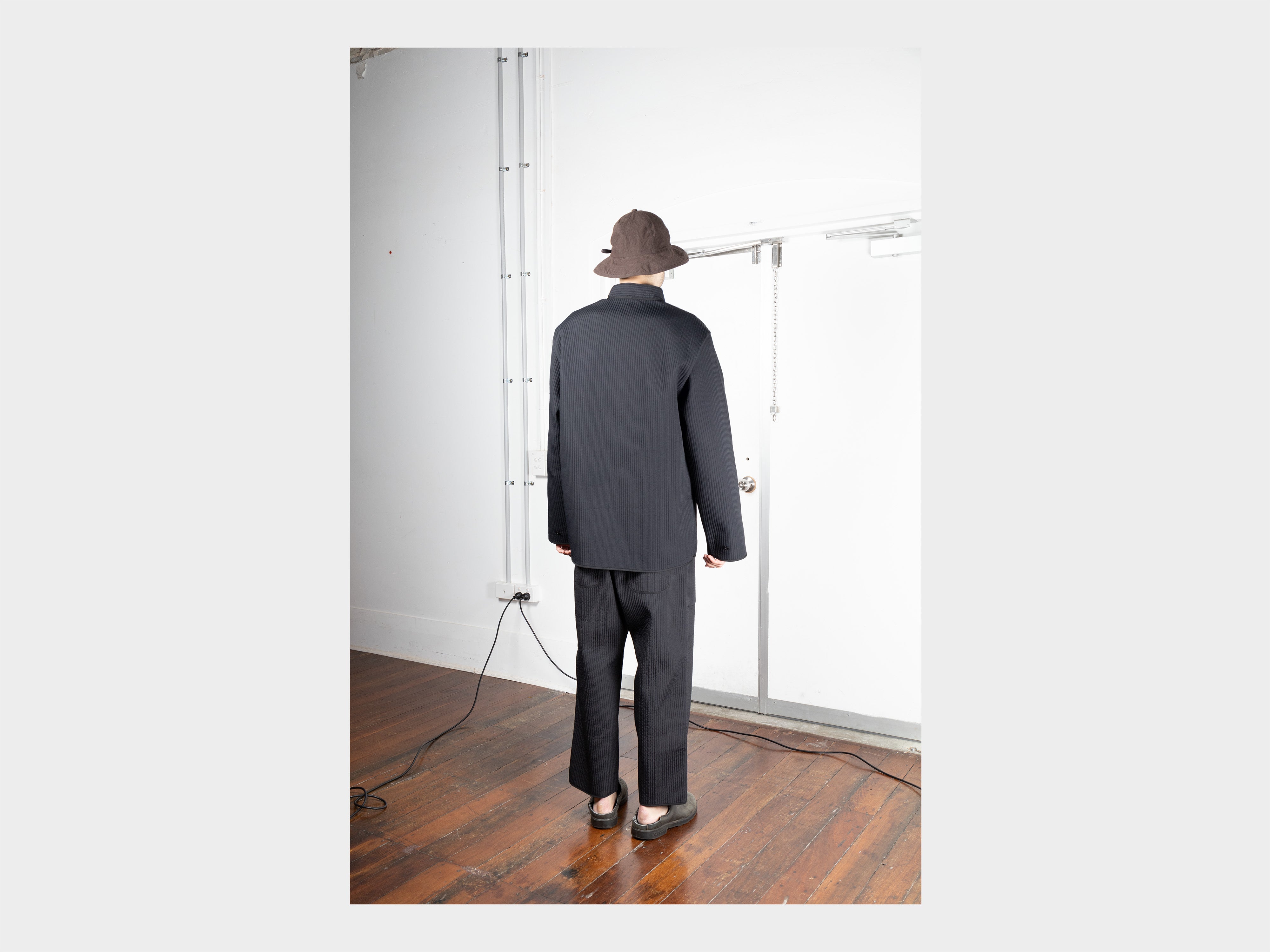 +Hard-type Nubi cloth. 100% polyester layers / 100% cotton fill, 7mm stitched wales. Dyed and woven for MAN-TLE in Daegu, South Korea.