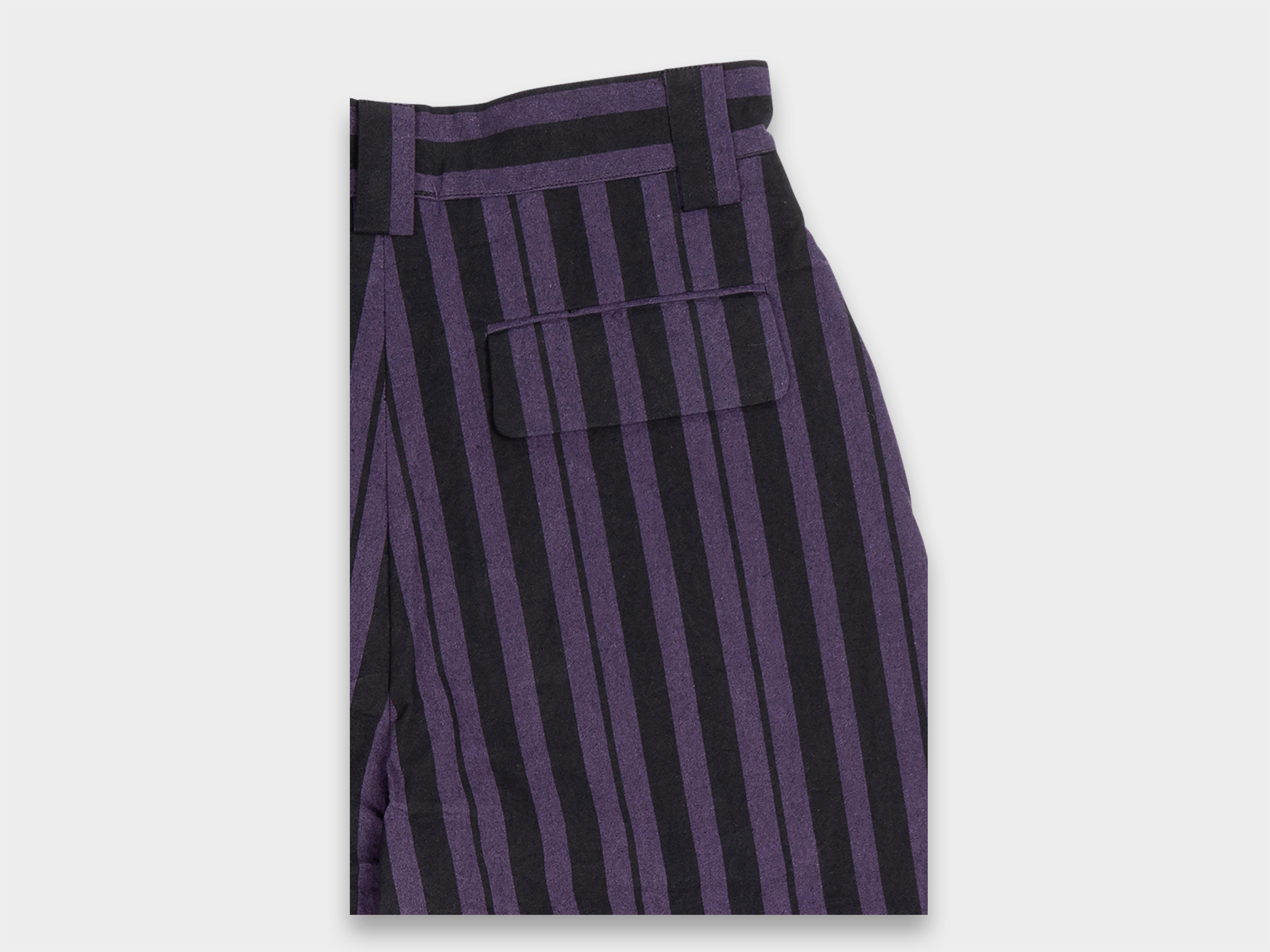Suit variation of R0P4 "Wide Pants". Relaxed wide-cut, long rise and loose hips, side-seam pockets, back welted pockets with flaps. Made in Japan.