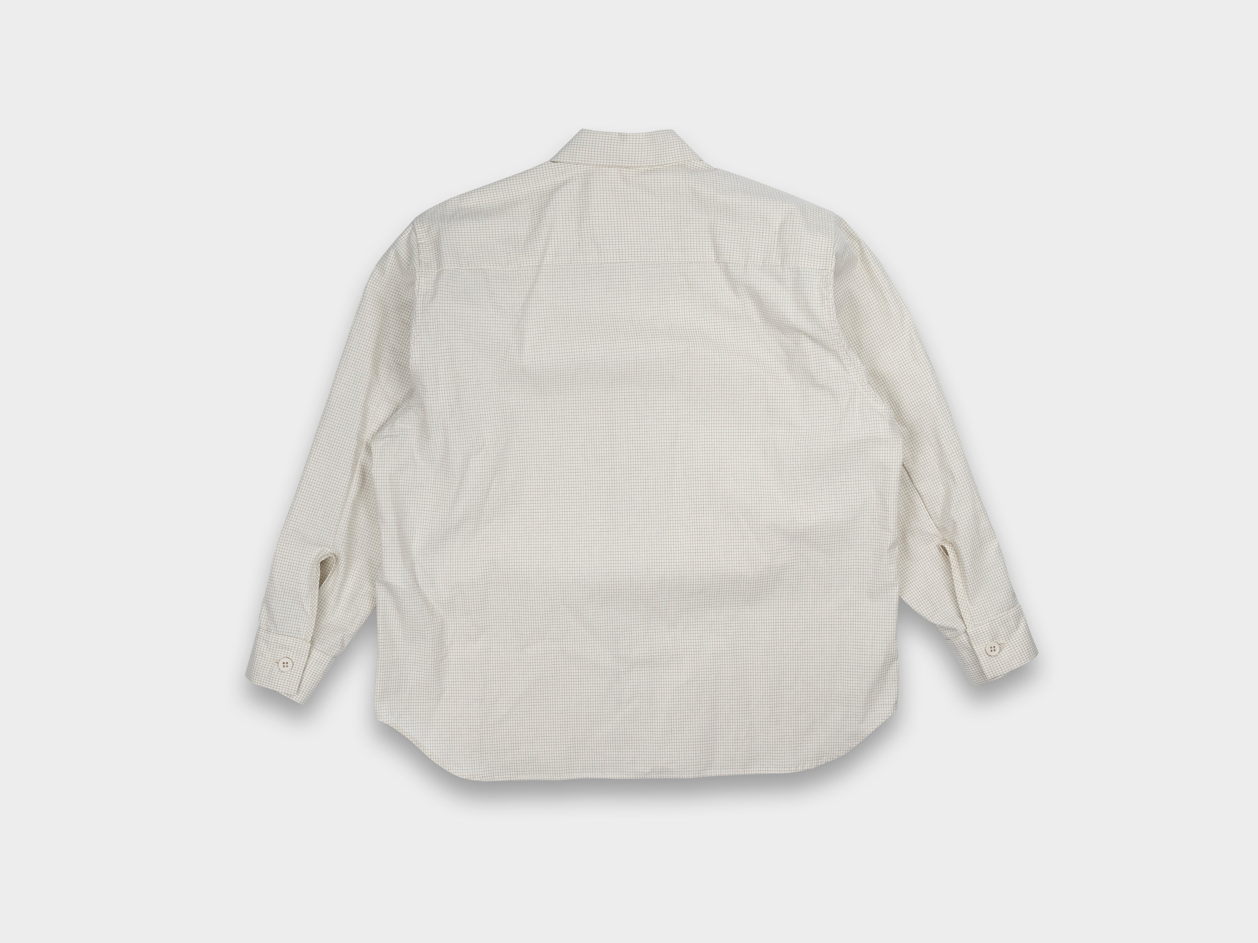 +Yard-dyed 100% cotton broadcloth with fine square grid motif. Using multiple finishings, a dry, papery texture has been achieved. Woven in Hyogo, Japan.