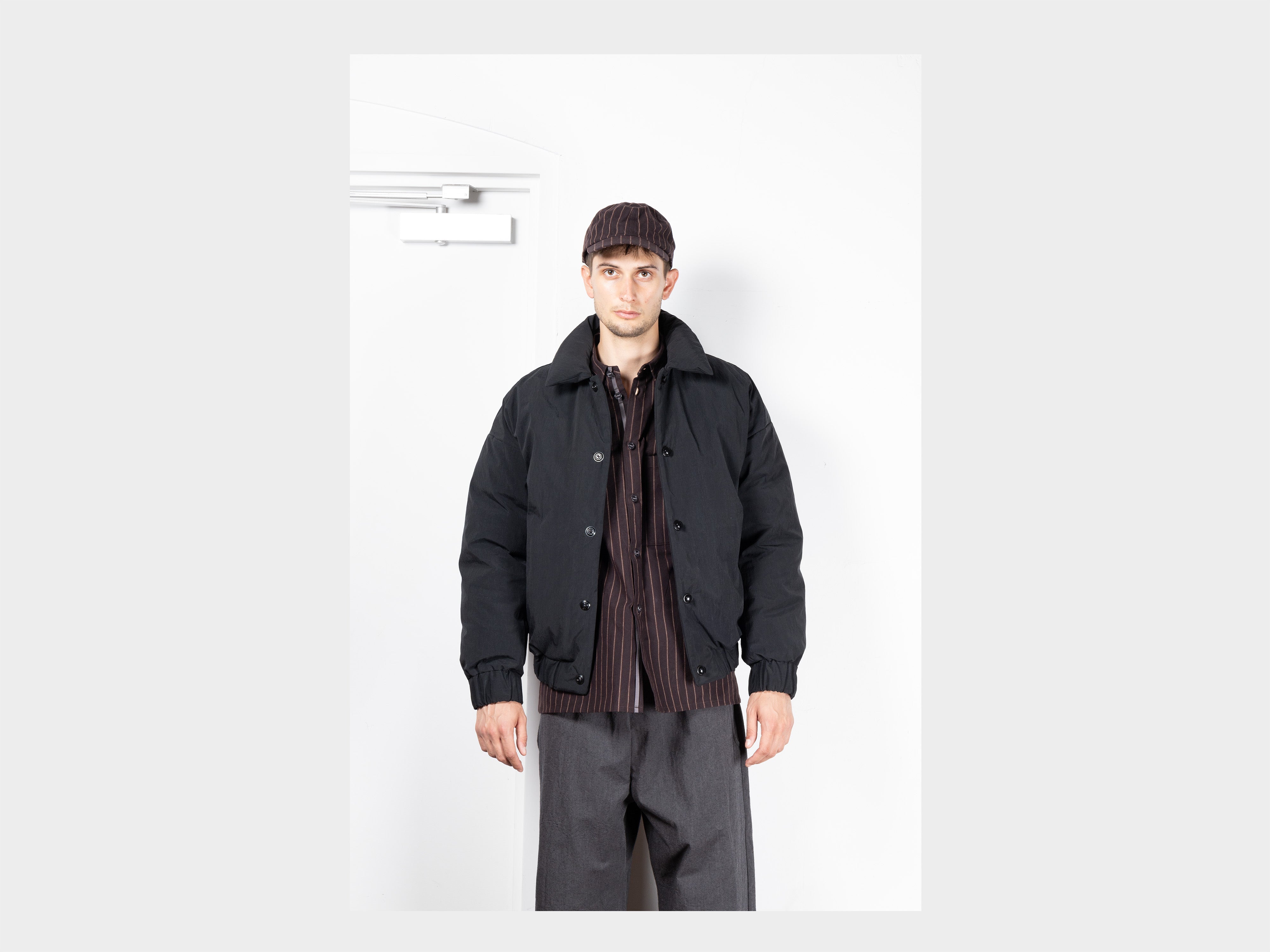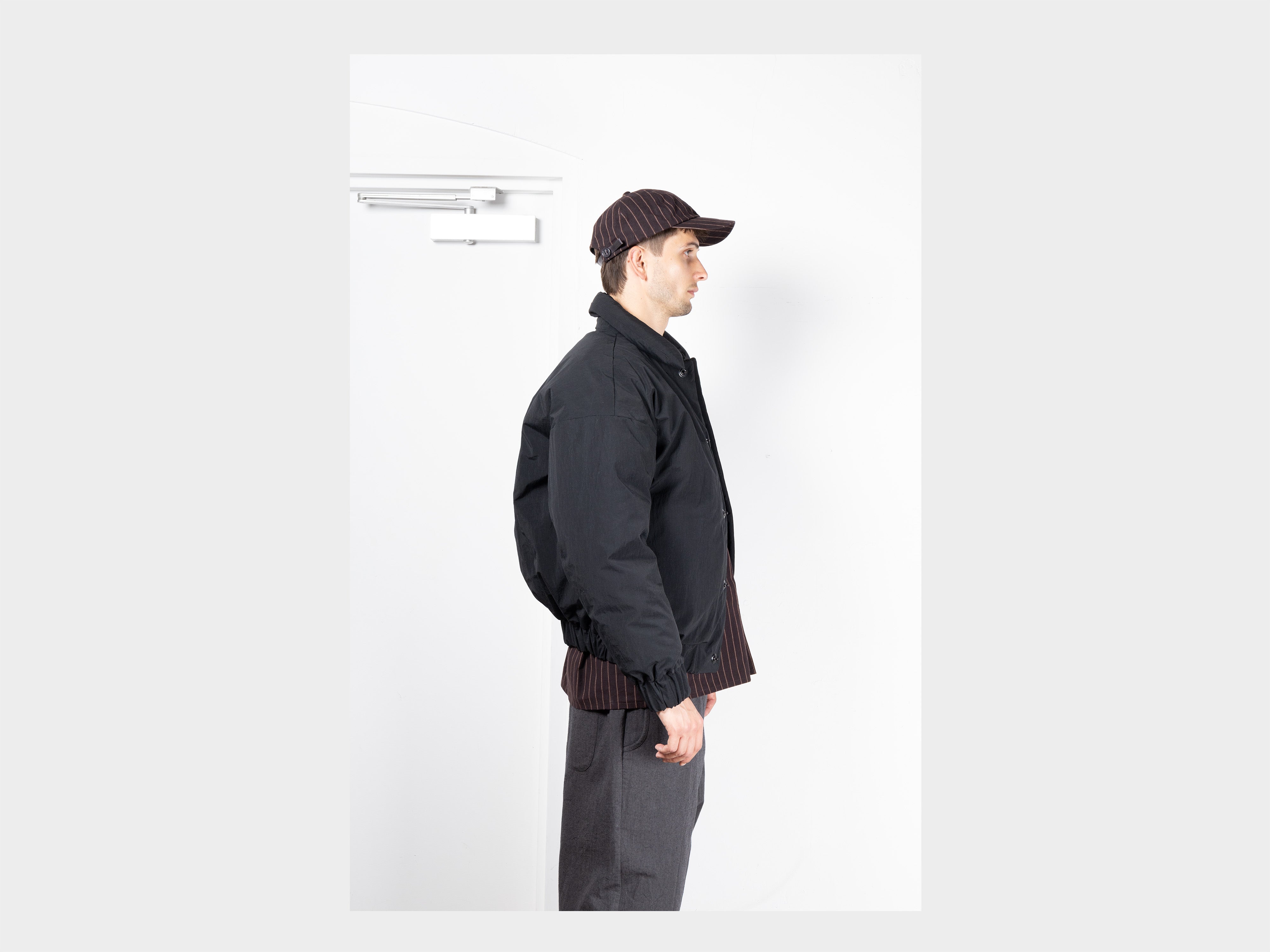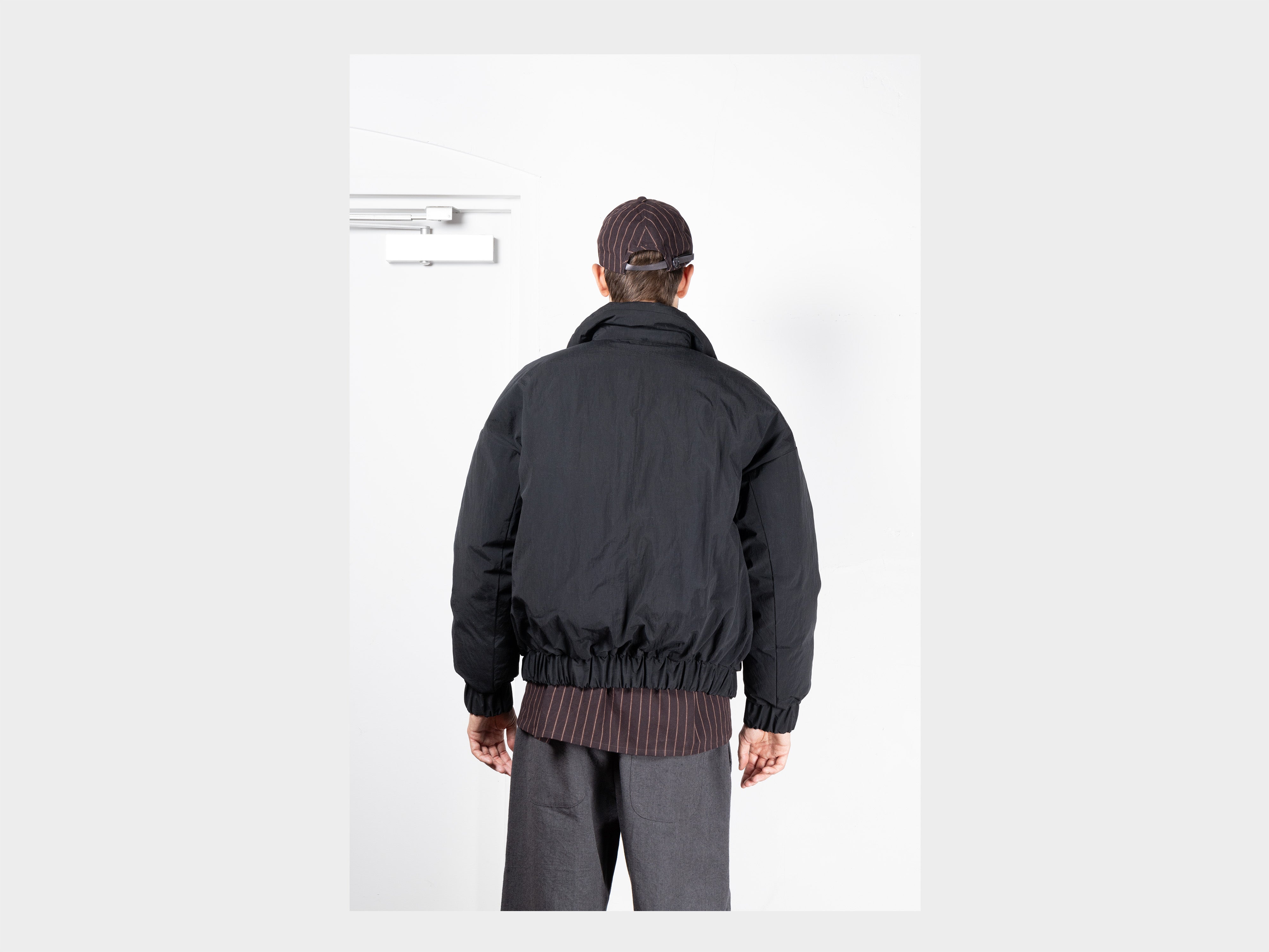 +100% cotton with a paraffin wax coating. Yarn spun and dyed in Japan using cotton grown in Australia and the USA. Woven in Shizouka, then coated and baked in paraffin wax in Fukui. This original MAN–TLE cloth, MT-Wax, is designed to reveal new sound, colour, and texture over time. At first heavyweight and naturally stiff, it softens, fades, and changes form with washing and wear, becoming personal to the body it covers. Woven for MAN–TLE in Shizuoka, Japan.
