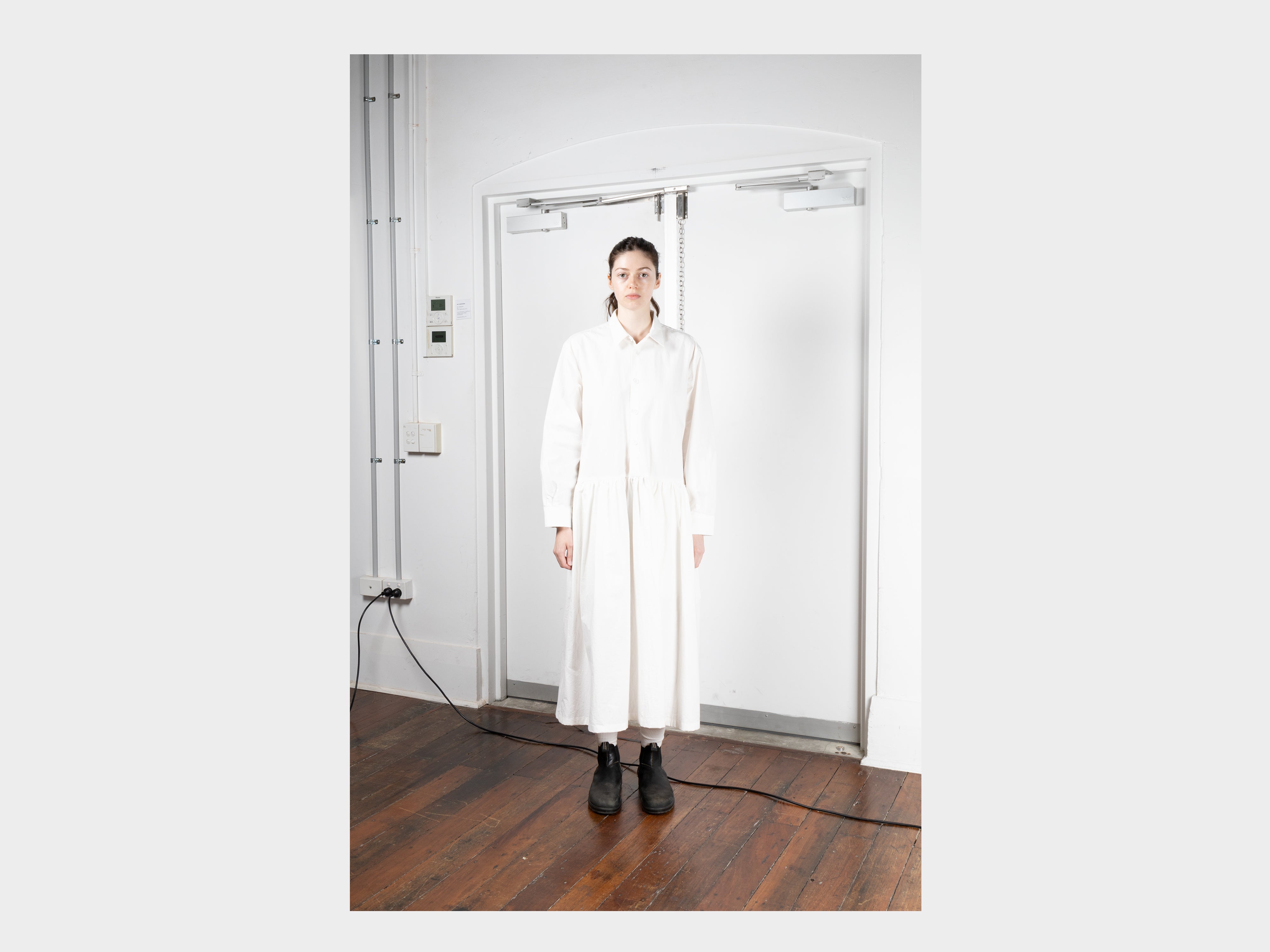 - W-R0A3 "Gather Shirt Dress" White Weather