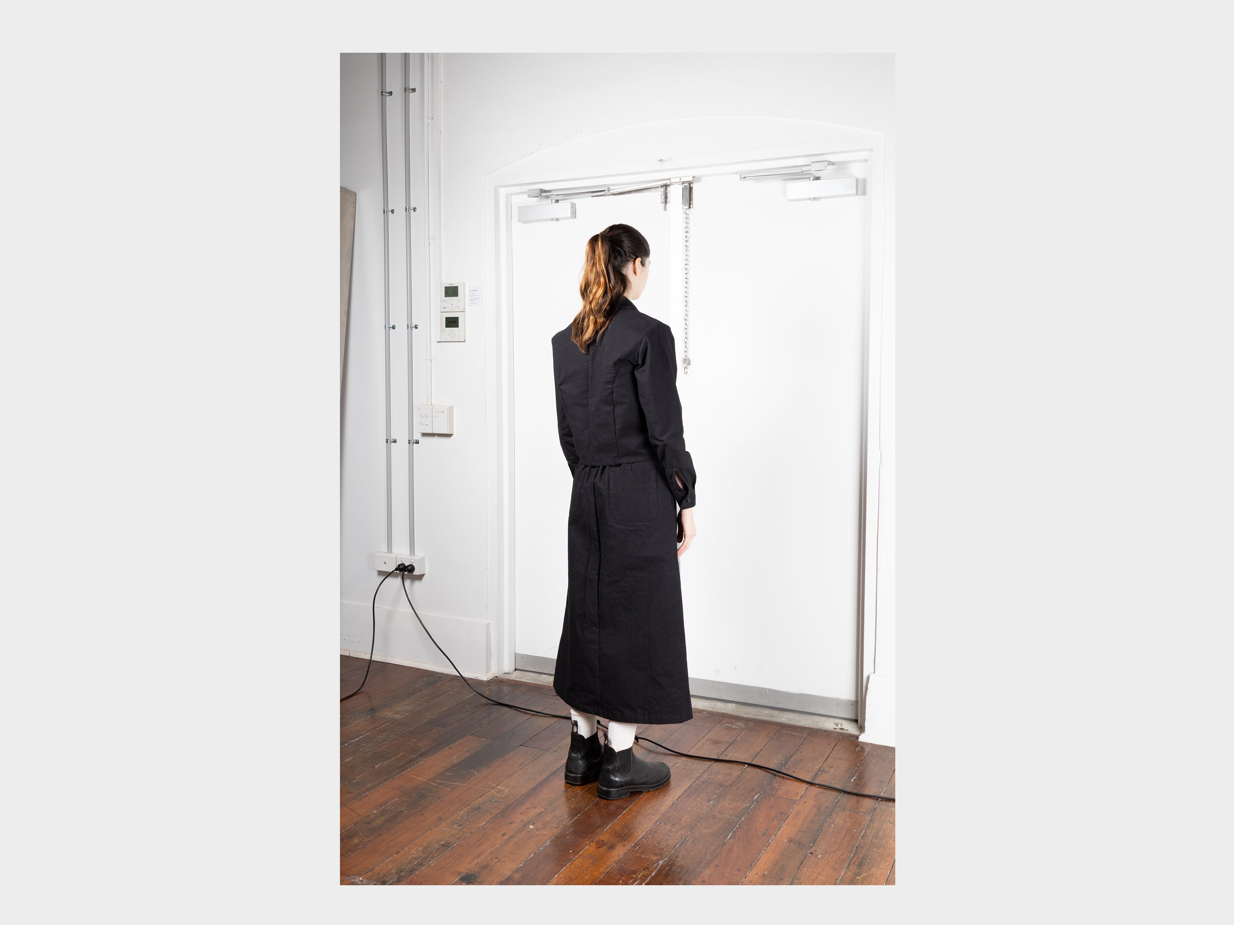 +100% cotton with a paraffin wax coating. Yarn-dyed, high-density and heavyweight, this cloth will develop character over time. With washing and wear it will fade, soften, and irregularities in the cloth may form. Woven for MAN-TLE in Shizuoka, Japan.