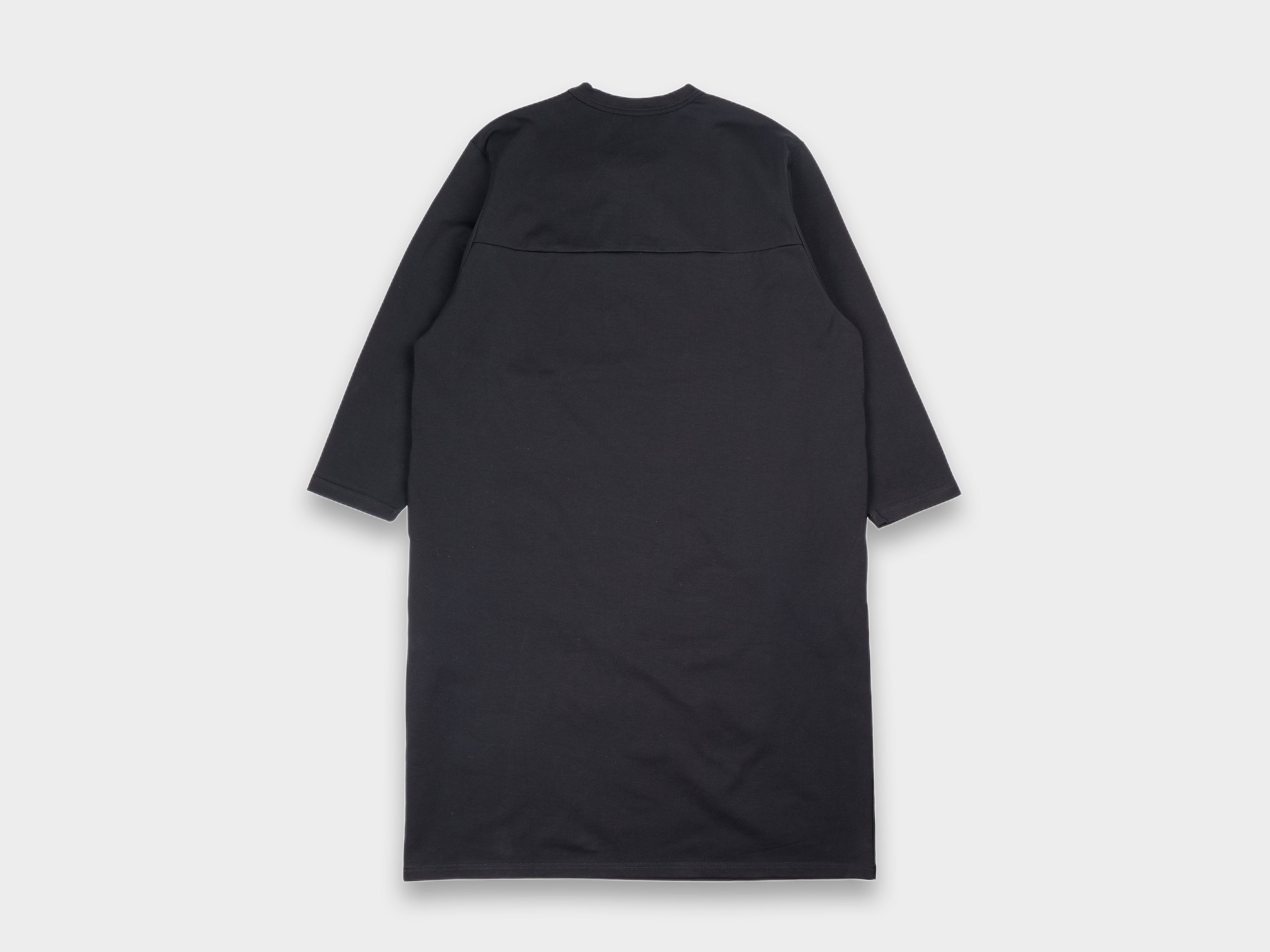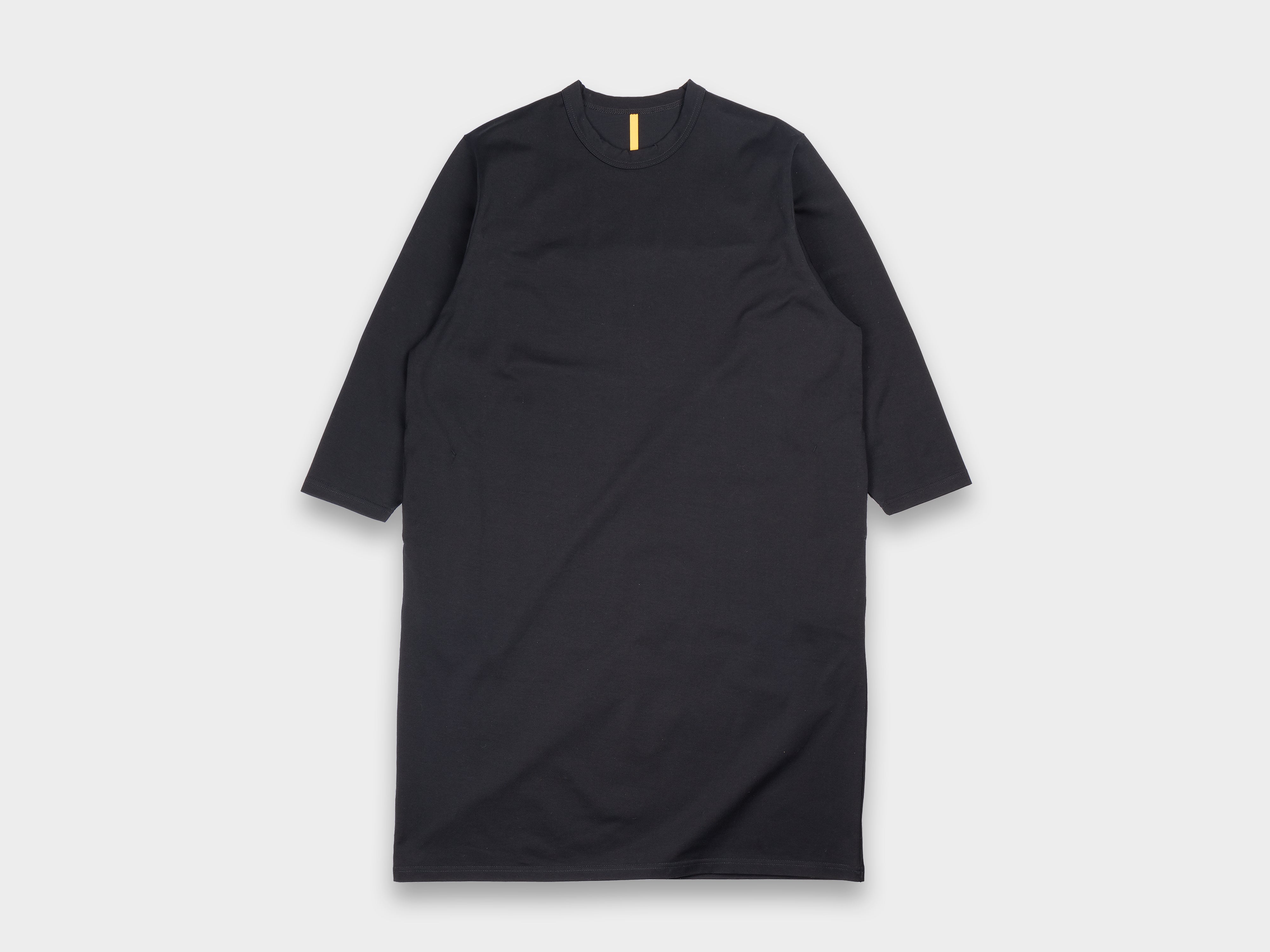 +Wide-cut t-shirt dress. Cropped length and sleeves, side-seam pockets. Made in Japan.