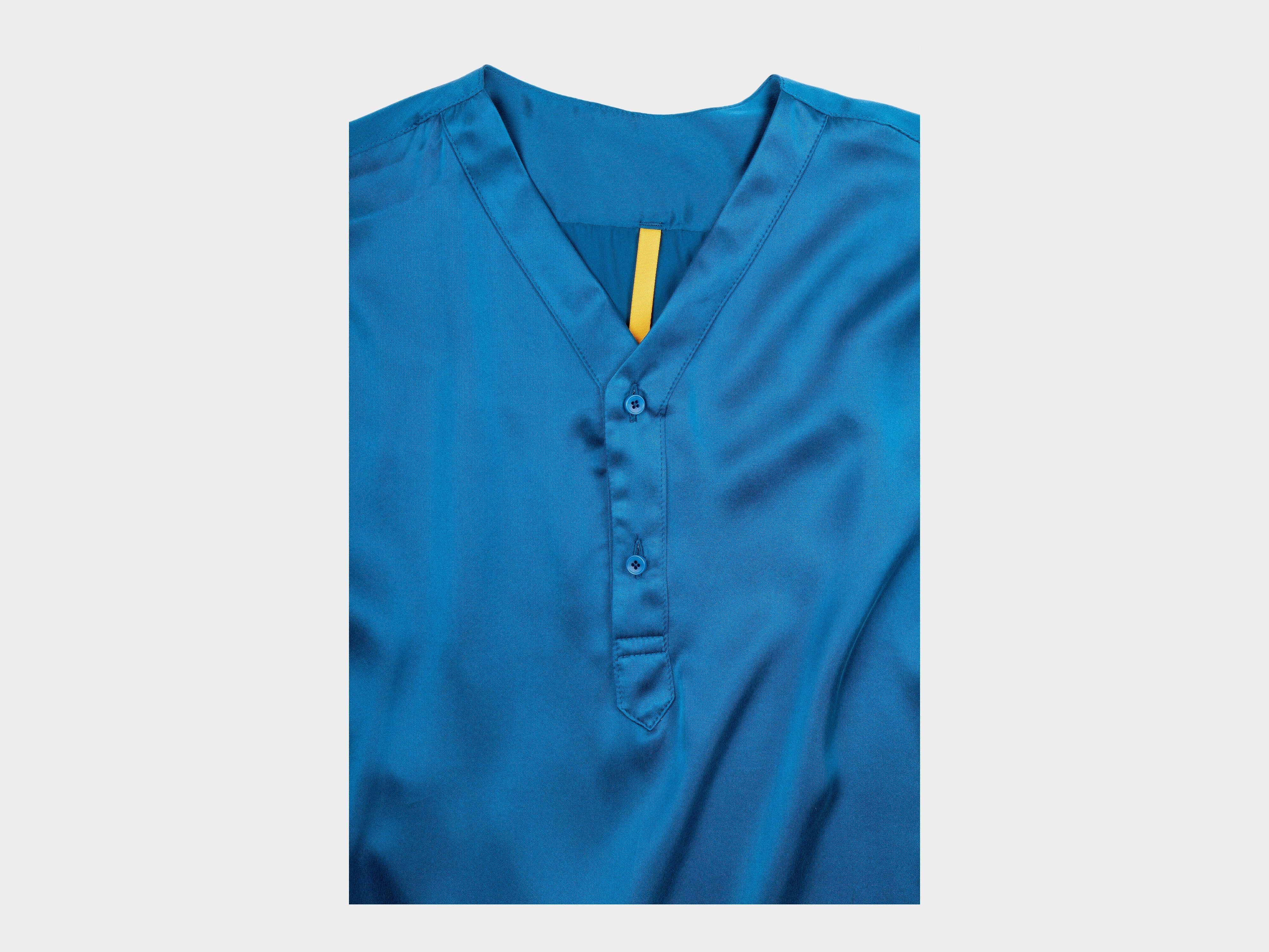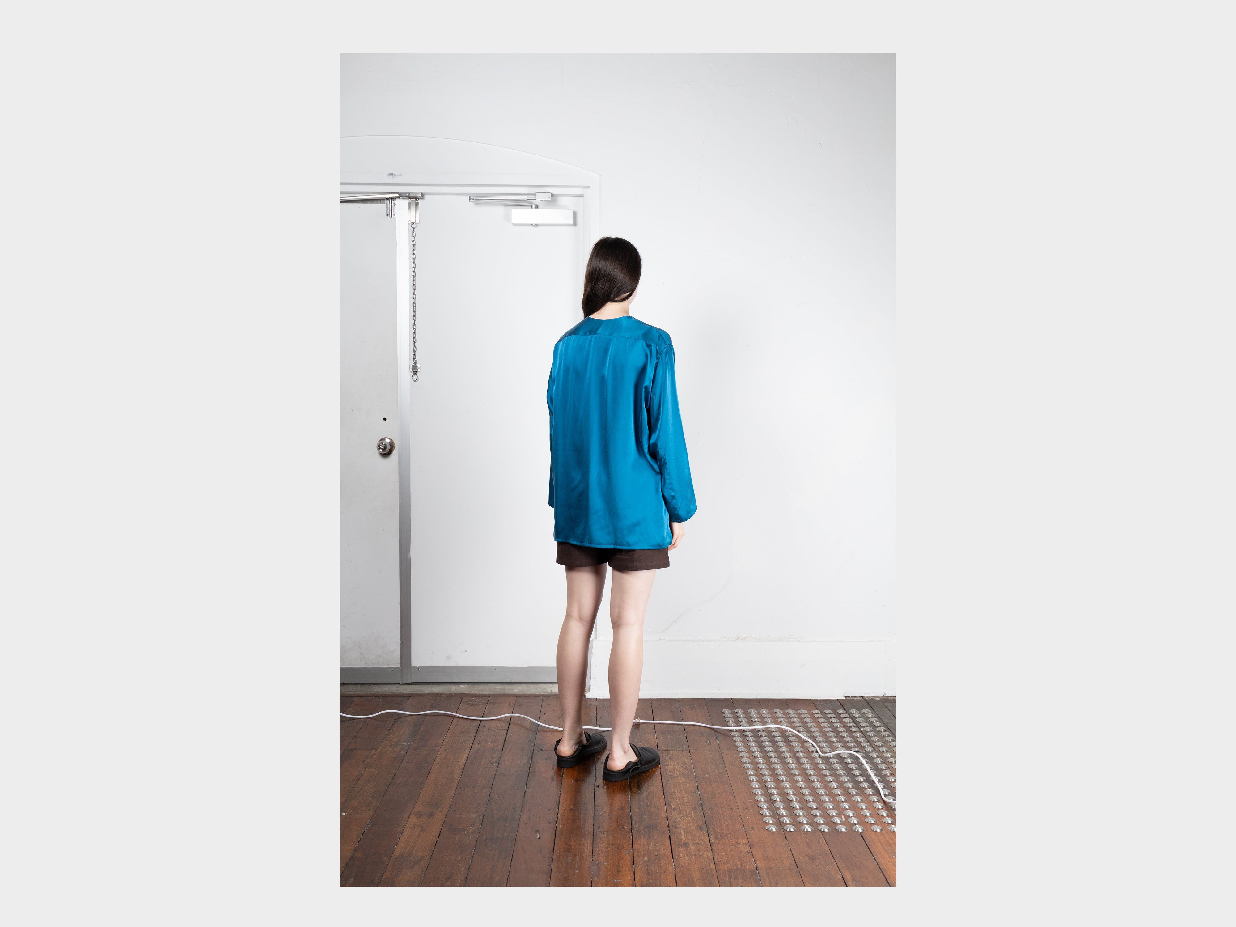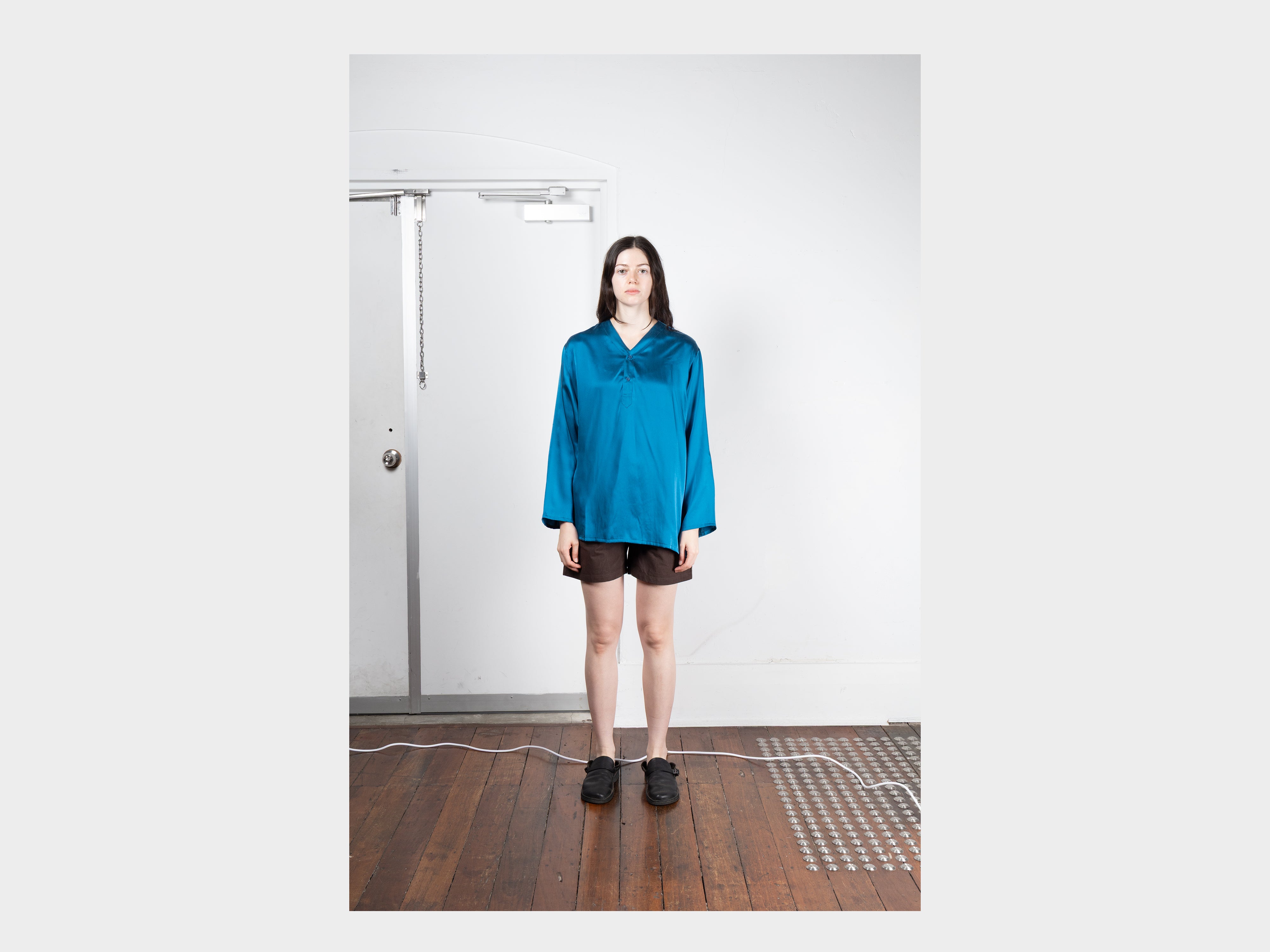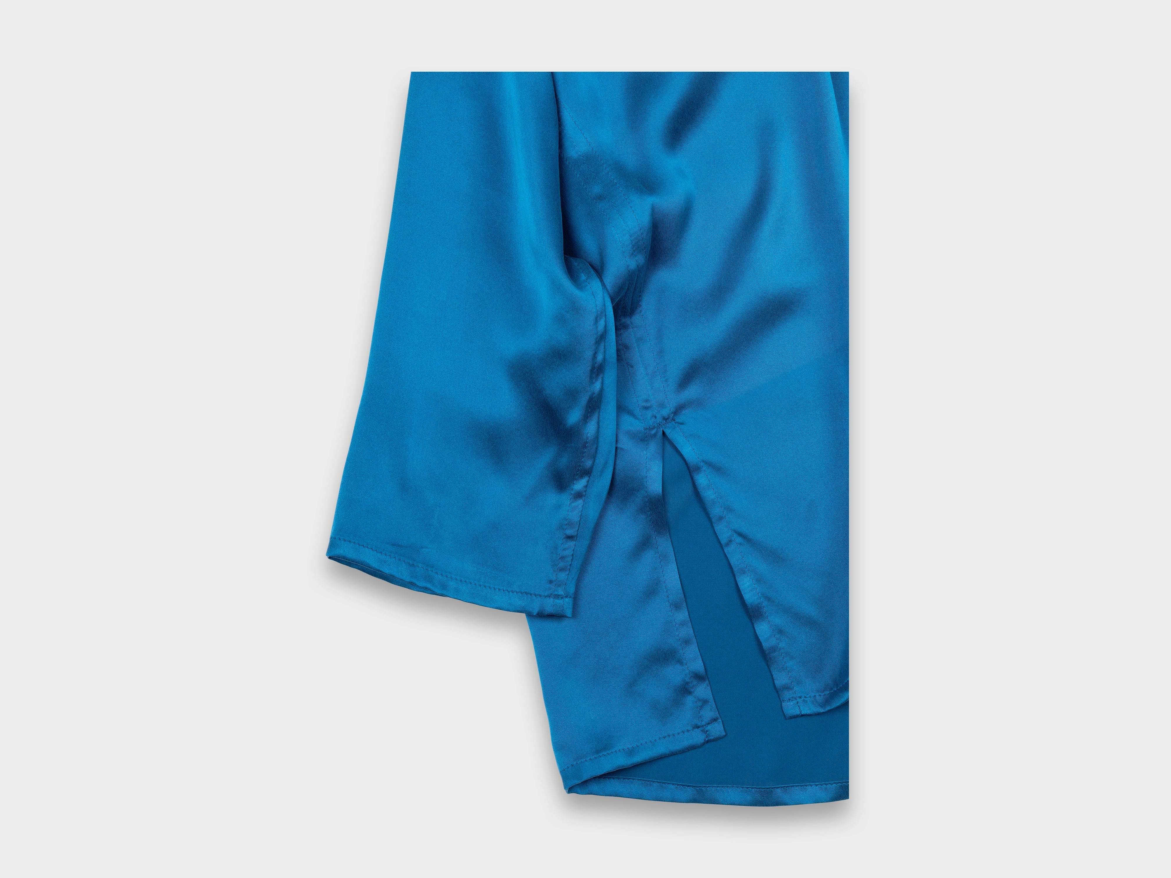 +100% silk satin. Sand-washed for a soft matte handle, this cloth is lightweight and drapes across the skin. Woven in South Korea.