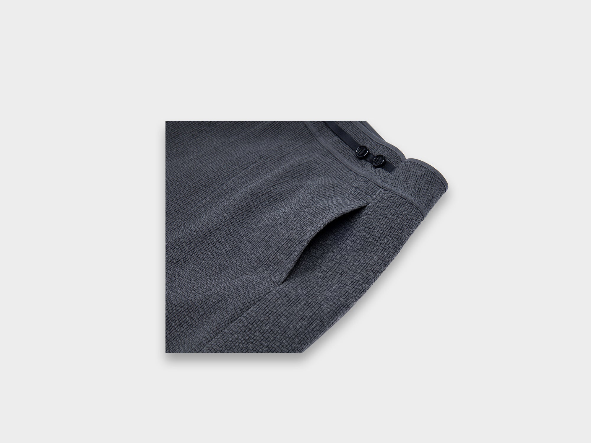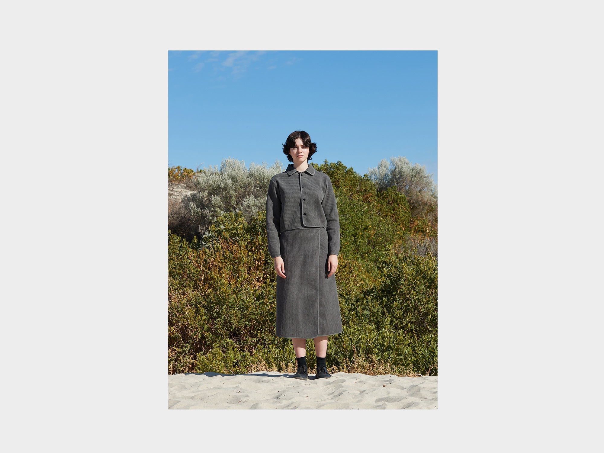Soft-type Nubi cloth. 100% cotton layers / 100% polyester fill, 3mm stitched wales. Dyed and woven for MAN-TLE in Daegu, South Korea.