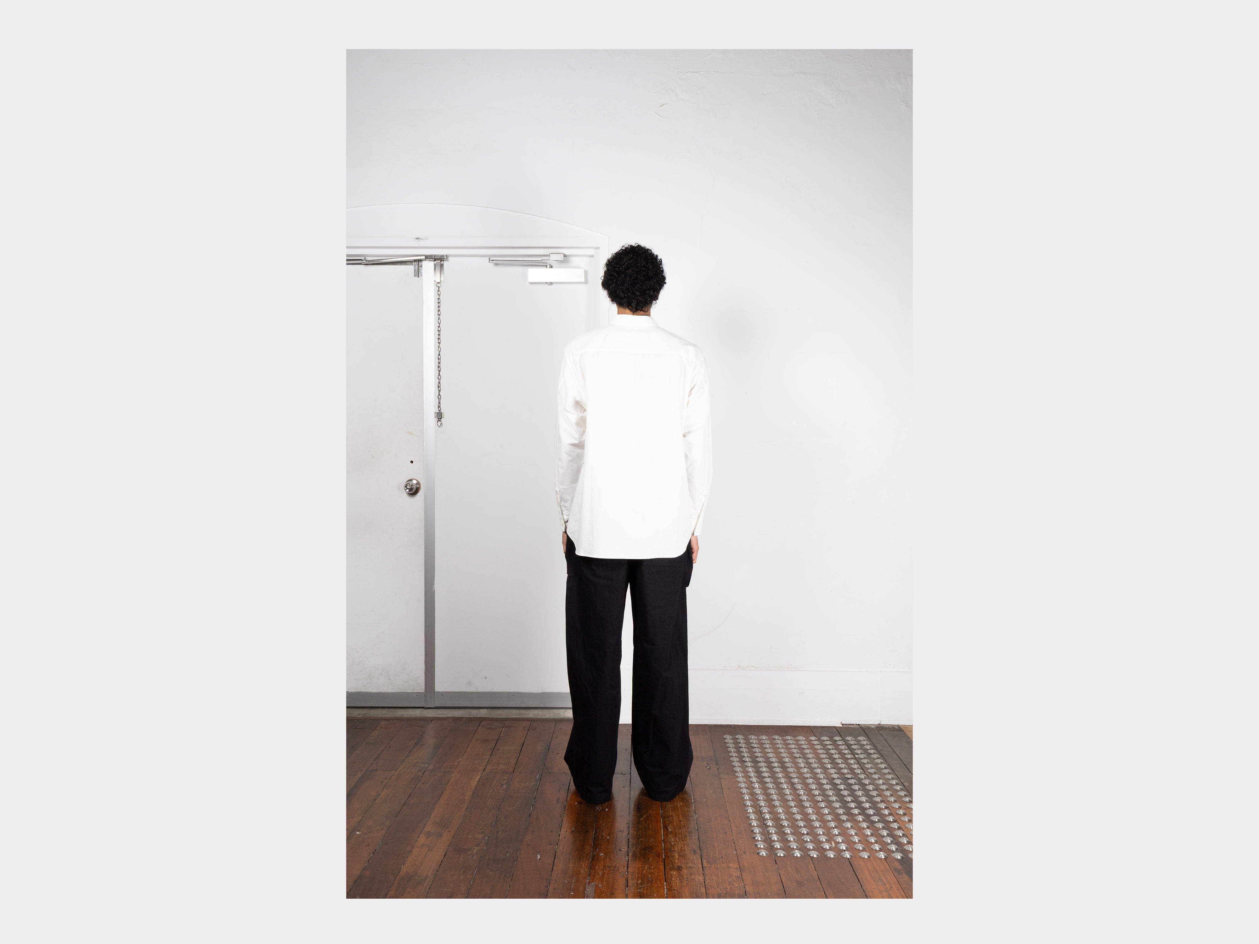 +100% Supima cotton, grown in the USA. This ultra-fine, high-density typewriter cloth represents a technical achievement by the new generation of an established, family-run textile mill in Hamamatsu, Japan. In pursuit of surpassing the industry benchmark for the finest, strongest, and smoothest typewriter cloth, it reaches a density of 358 yarns per square inch, outweaving the previous record of 340. With 160 yarns in the weft and 198 in the warp, this cloth is extremely difficult to produce and requires the use of an older wooden shuttle loom, chosen for its gentler handling. Supima cotton is selected for its extra-long staple fibres, which are spun into premium yarns that are fine, soft, and durable, essential for weaving at this calibre. The resulting cloth is ultra-lightweight and breathable, barely touching the skin, with a fine, papery texture. It rustles and crunches with movement, and despite its delicacy, the density of the weave makes it supremely strong. When cared for appropriately, this garment will retain its shape and quality through repeated wear. Woven for MAN–TLE in Shizouka, Japan.