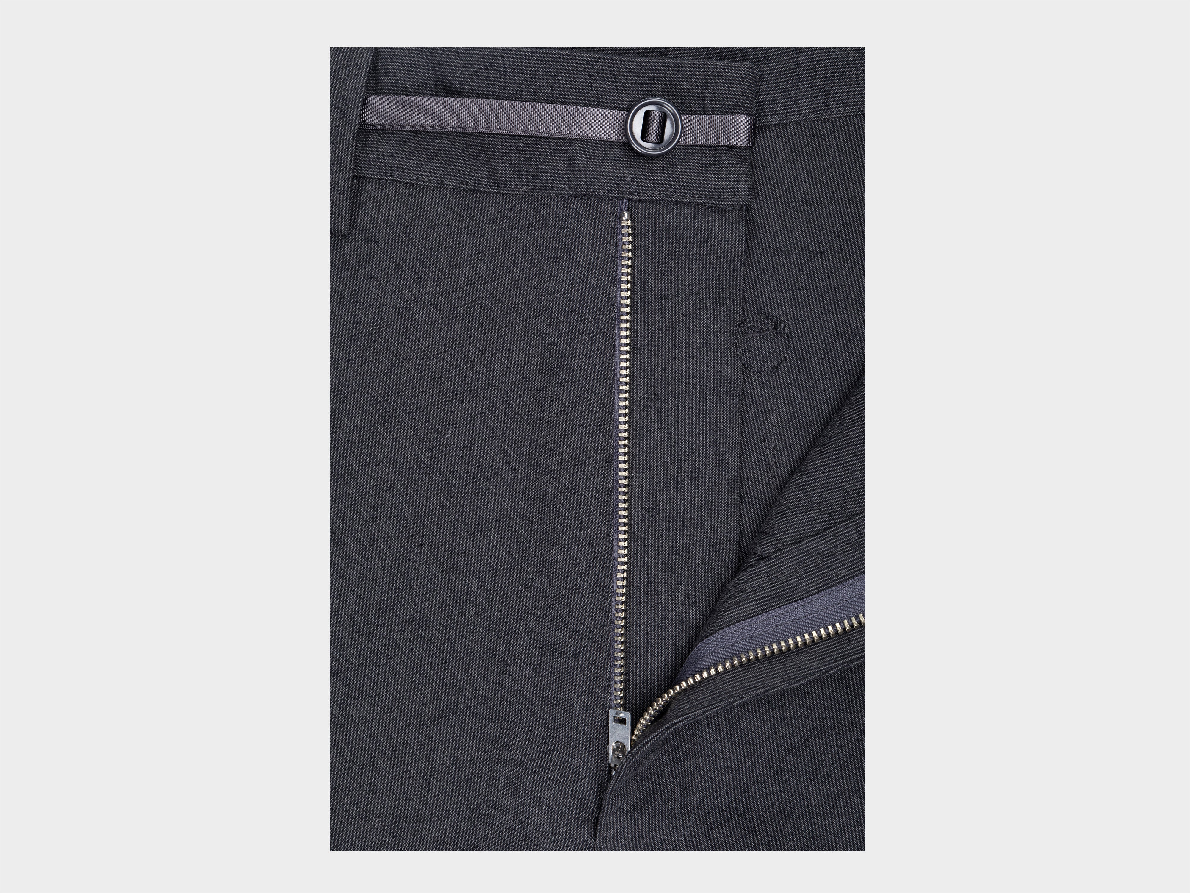 +55% cotton / 45% wool. Yarn dyed, high density plain weave with narrow vertical stripe. Cotton yarn warp, and wool yarn weft that blends New Zealand wool and Australian Merino. Cloth has a natural, dry handle and is suitable for all seasons. Woven for MAN-TLE in Shizuoka, Japan.