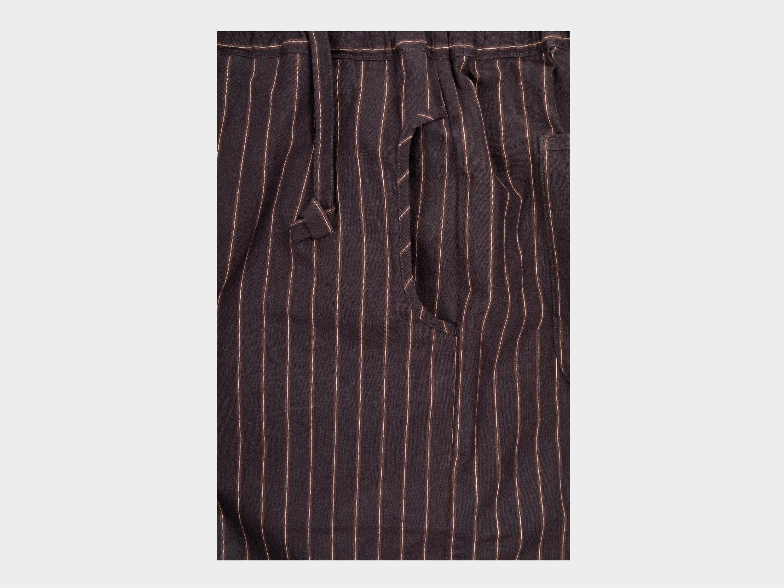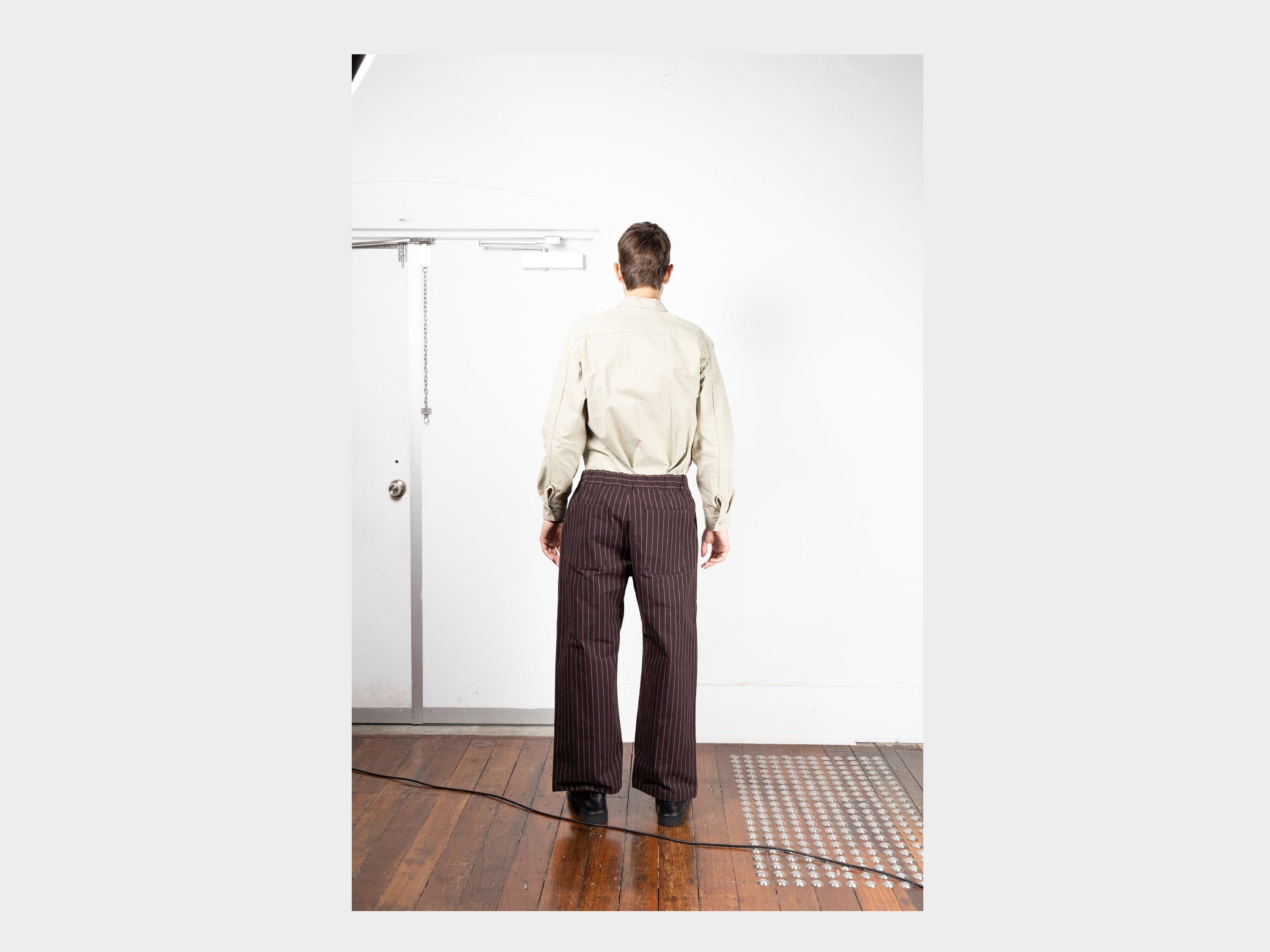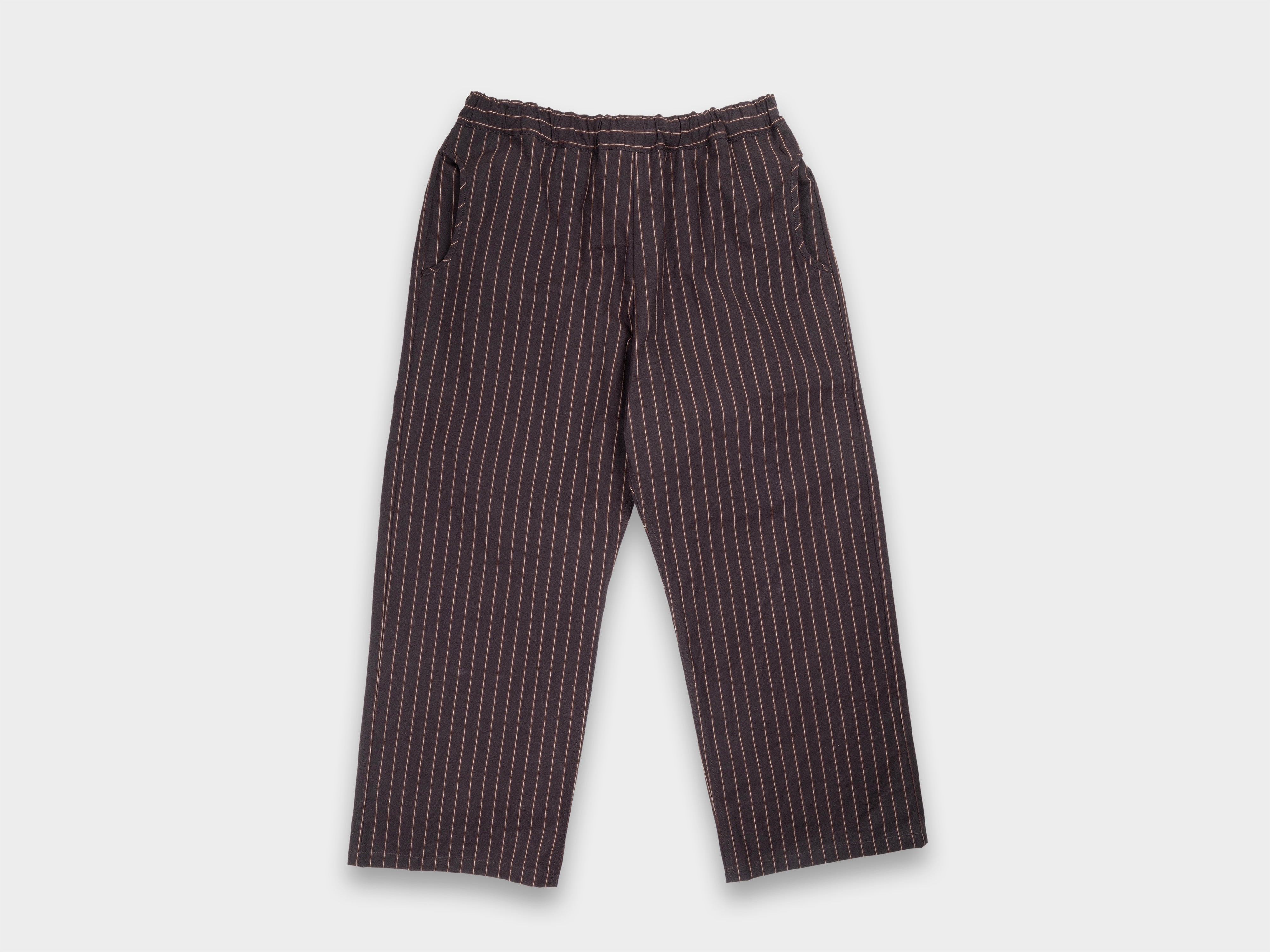 +Relaxed-fit elastic waist trouser. Long rise with a loose, wide leg. Cut-away front pockets, rear patch pockets, drawstring waist. Made in Japan.