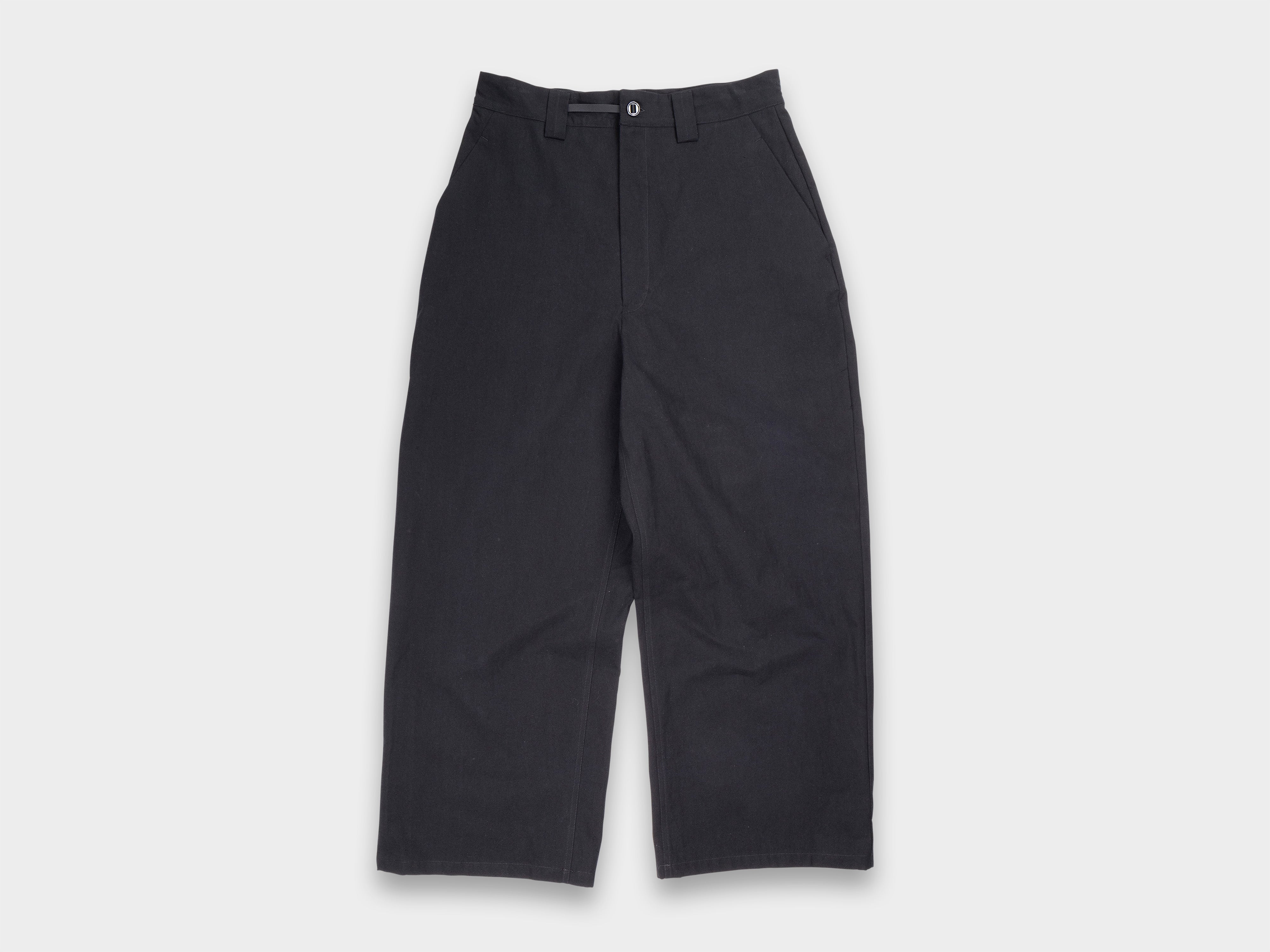 +Super wide-leg pants. Long rise with generous room throughout, and long, wide legs. Seat belt tape with adjustable button at the front, side-seam pockets and rear patch pockets. Made in Japan.