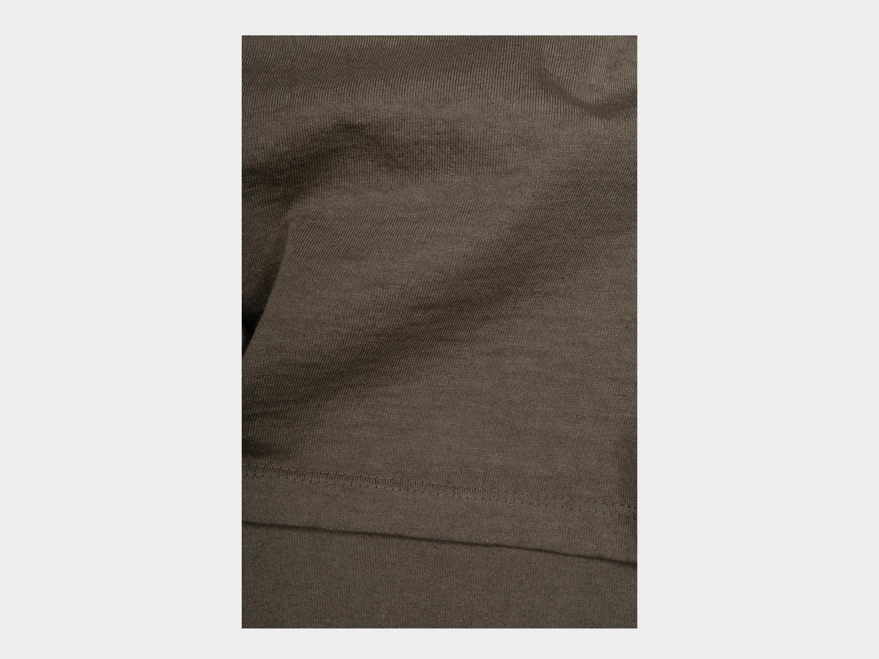 +100% cotton. Midweight 230gsm, knitted from an organic and recycled cotton blend. Durable with a dry handle, and evocative of classic cotton jersey that embraces wear with time. Knitted in Wakayama, Japan.