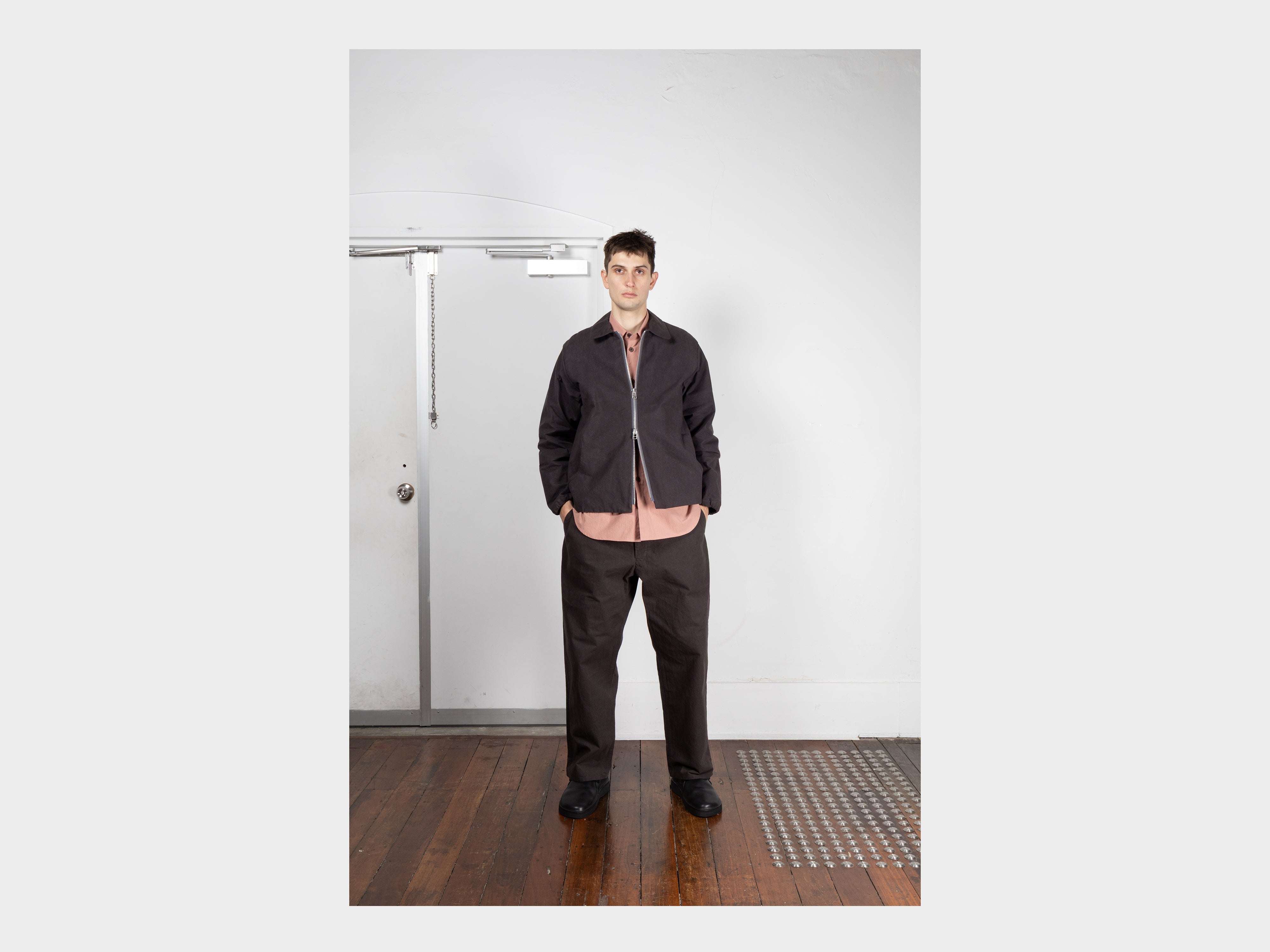 +Straight-cut jacket with large scoop pockets. Self-lined front, pointed collar with hidden stand, wide YKK zip, elasticated cuffs and back hem. Made in Japan.