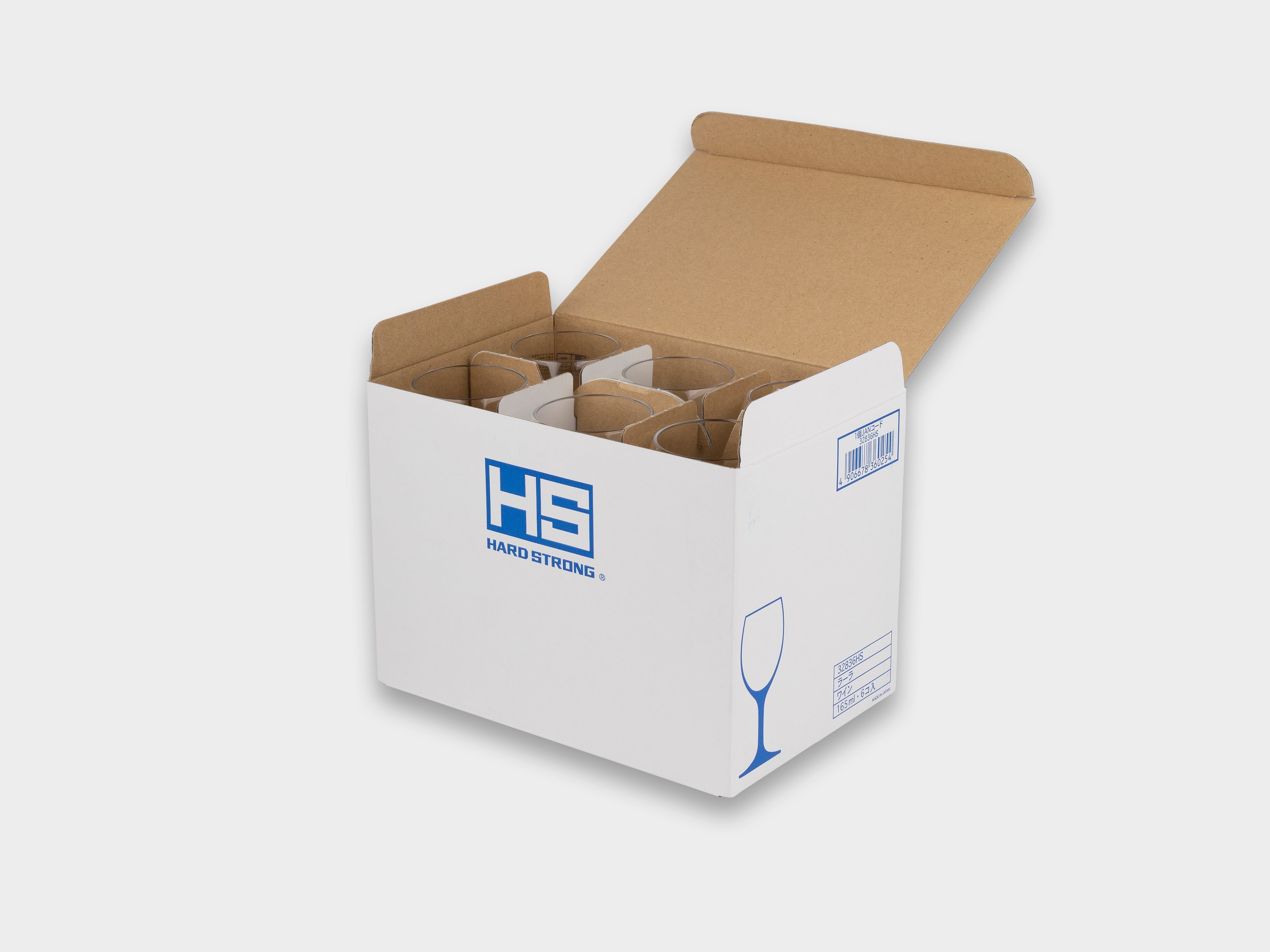 +Set of six wine glasses from Toyo-Sasaki's HS range. HS stands for hard strong, a division of Toyo-Sasaki Glass which made its debut in 1967, as Japan's first commercialised toughened glass. The durability and stackability of this series helped propel TSG to become the most used glassware producer in the hospitality industry in Japan.